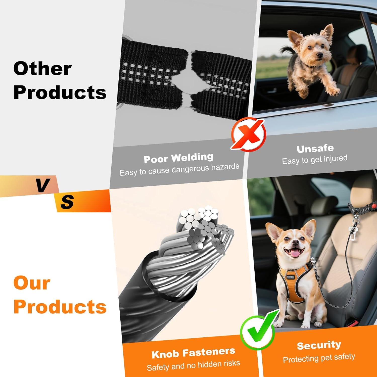 【Chew Proof & Durable】: This new version dog seat belts is made of steel cable which is extremely durable.Different with the fabric belt, the steel braided cord dog car leash is non chewable ,even for an aggressive chewer.
