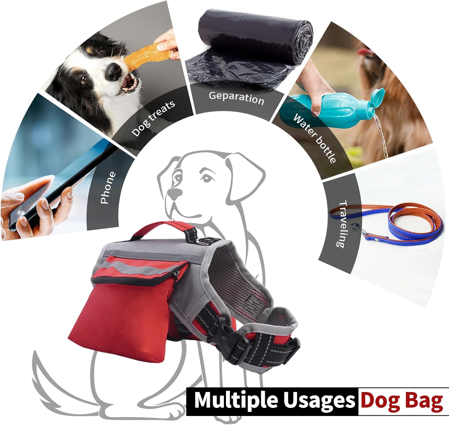 Lightweight Functional: This lightweight dog backpack reduces burden during hikes. With multiple compartments, it neatly organizes essentials like water, treats, toys, and personal items such as keys and phones, making it perfect for hassle-free outings