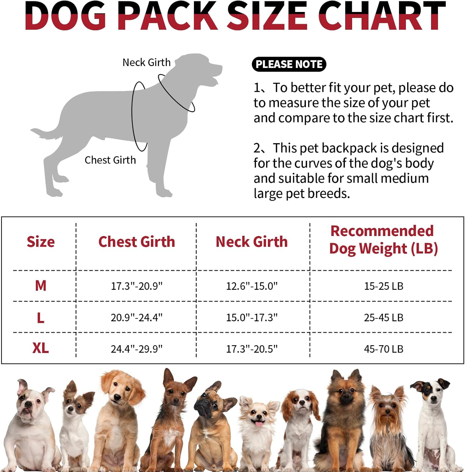 Equipped with an interior safety buckle, this dog backpack keeps your pet securely in place during walks or hikes, preventing any sudden escapes.The reflective strips enhance visibility, making nighttime outings safer for you and your dog.