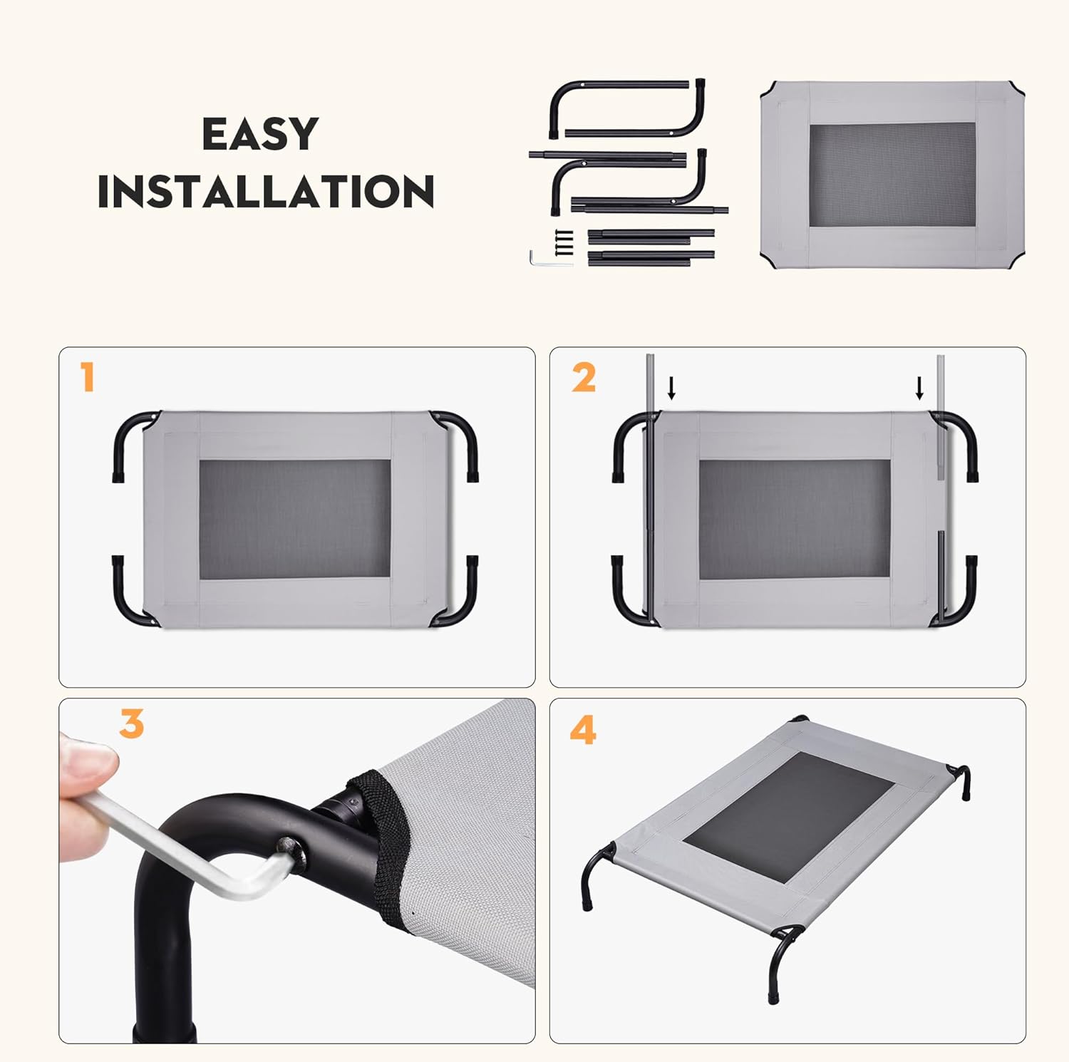 【Fold-Flat Portable Dog Cot for Outside】 Sets up in 60 seconds, folds even faster. Built-in carry handle lets you toss it in the truck for camping, tailgates, or just a sunny spot on the deck.