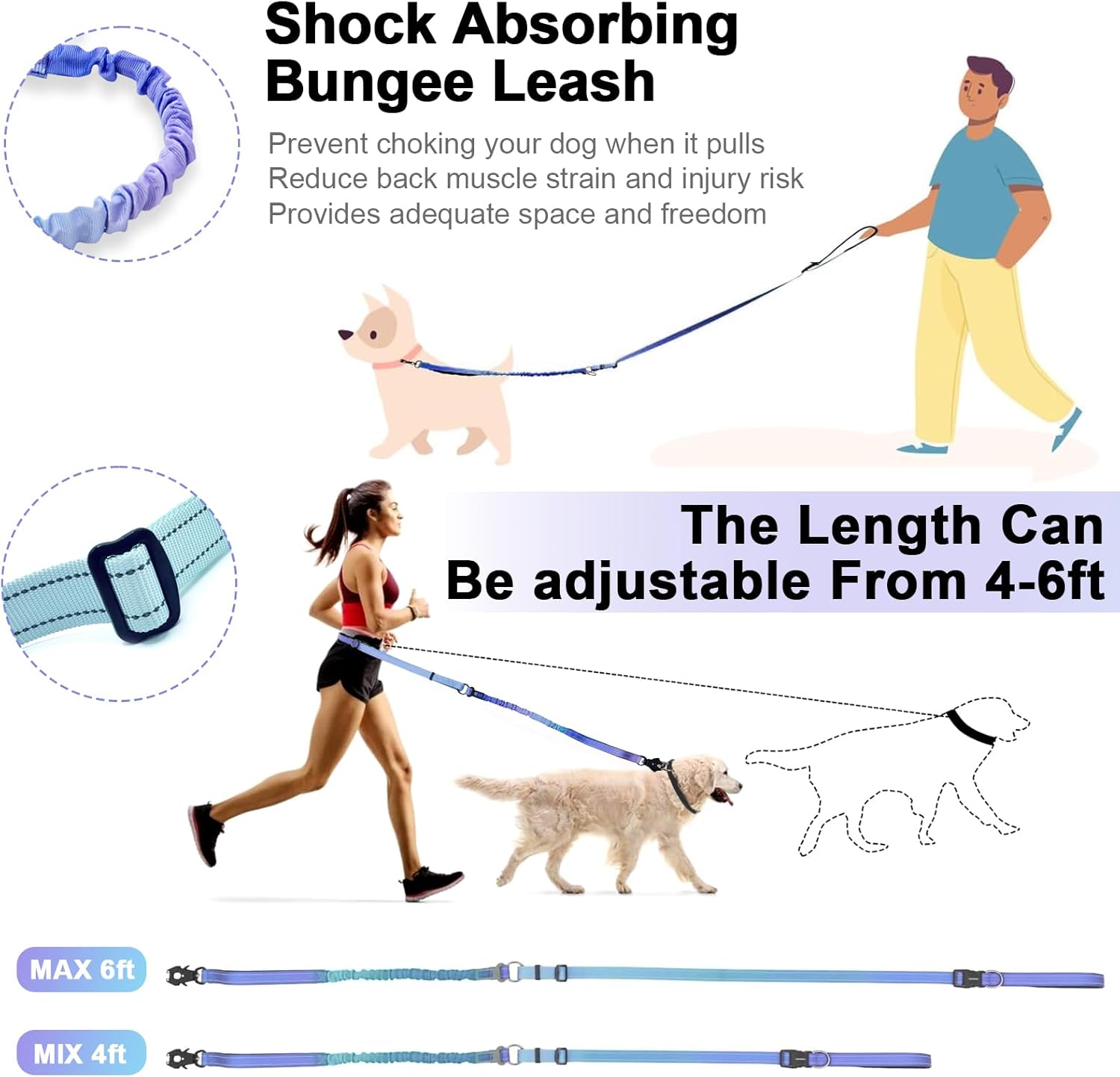 Comfortably Run With Your Dog: With this leash, running and walking with your dog will free your hands. The length of the dog leash can be extended from 4 feet to 6 feet. Sturdy waist bungee style dog leash fits a variety of waist sizes and is adjustable at the waist. Provides greater range for running, jogging and hiking while ensuring a safe distance between you and your dog