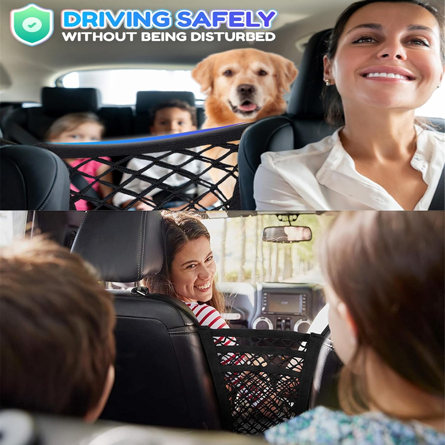 DYKESON newly version car dog barrier& mesh car organizer is better than others! Tool-free installation, directly on the rod of the seat,avoid children or Pet climbing driving position affect the safe driving,keeping your car clean and organized, provide effective protection for traffic safety.