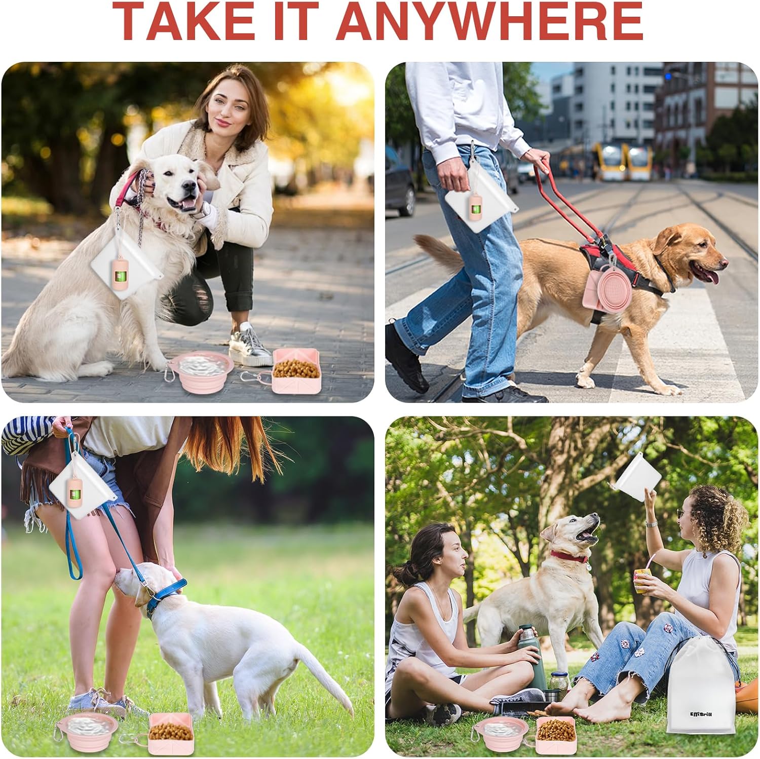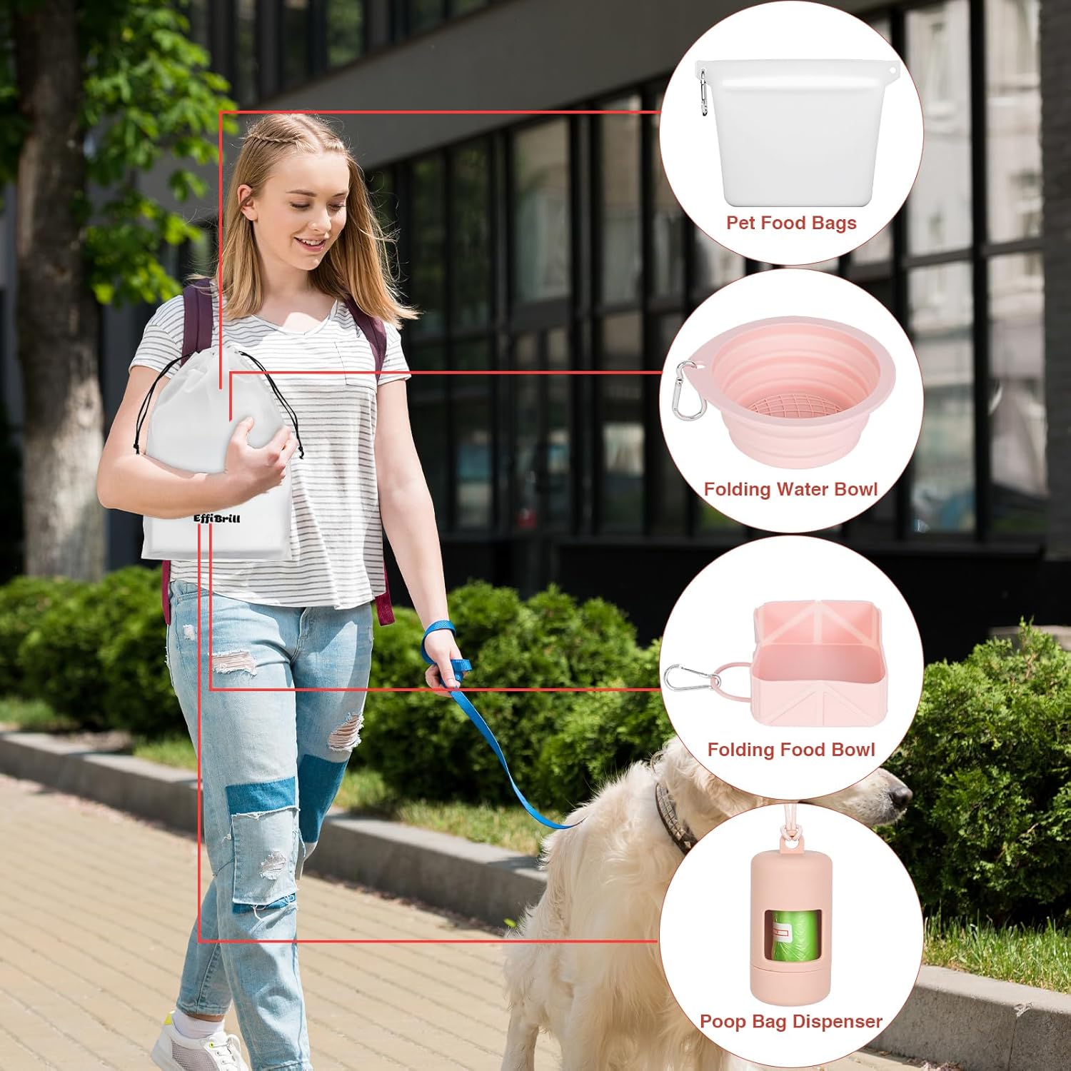 Whether it’s a weekend camping, a cross-town road trip, or a daily walk, create the perfect getaway experience for your furry friend! The selection set includes 2 foldable silicone bowls, a silicone dog food bag and a dog poop bag holder, and the lightweight design reduces luggage space by 50%