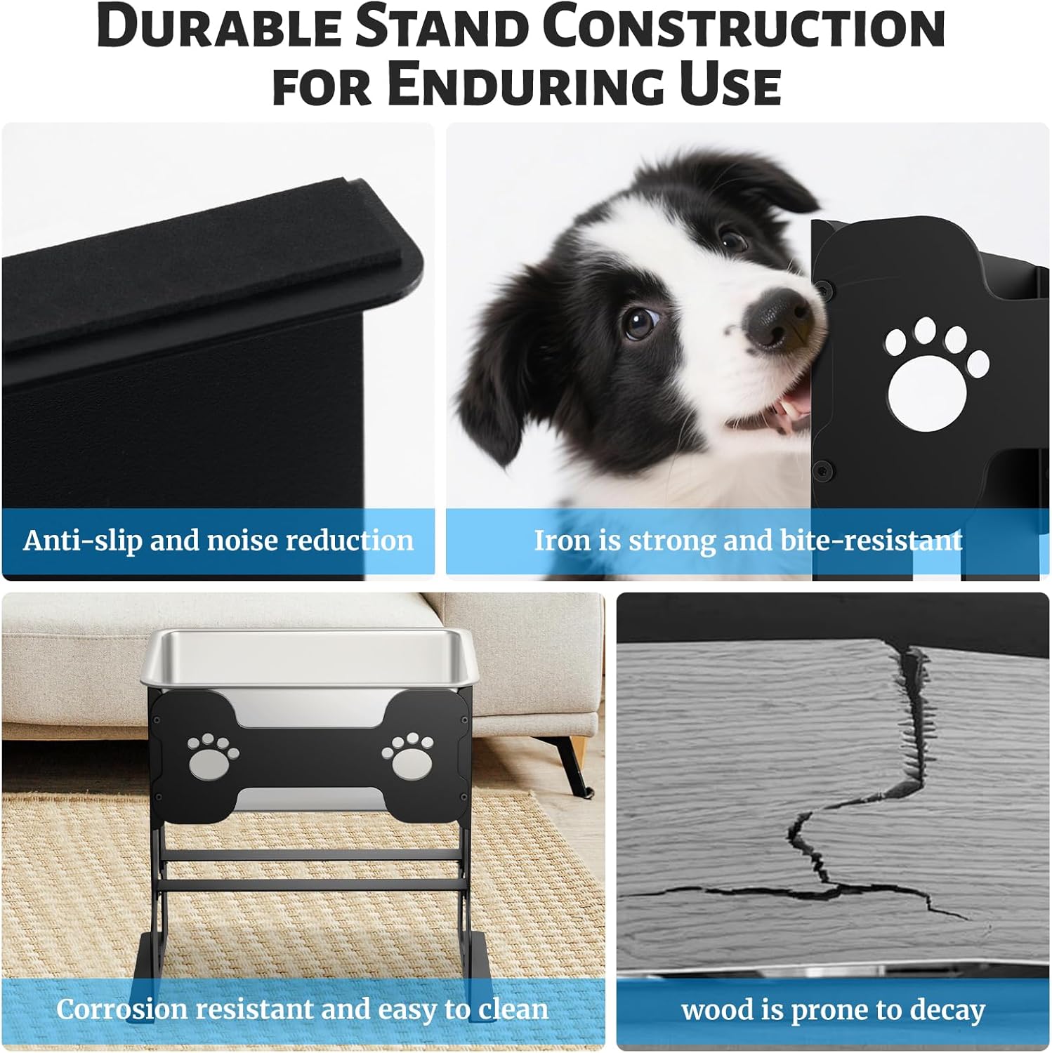 Full-Metal Stand for Indoor/Outdoor Use: High-quality iron construction makes this stand sturdier than wooden ones, withstanding rowdy pets. The bone-shaped design resists corrosion (wood tends to mold), perfect for kitchen or backyard use. Built to last, it assembles in minutes—no hassle.23