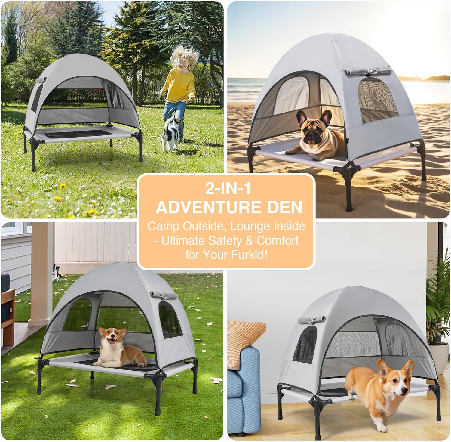 🌲 Elevated Outdoor Dog Bed with Canopy – Cooling Camping Tent, Removable Shade, Off-Ground Cot, Small — Outdoor Dog Gear Review & Current Price