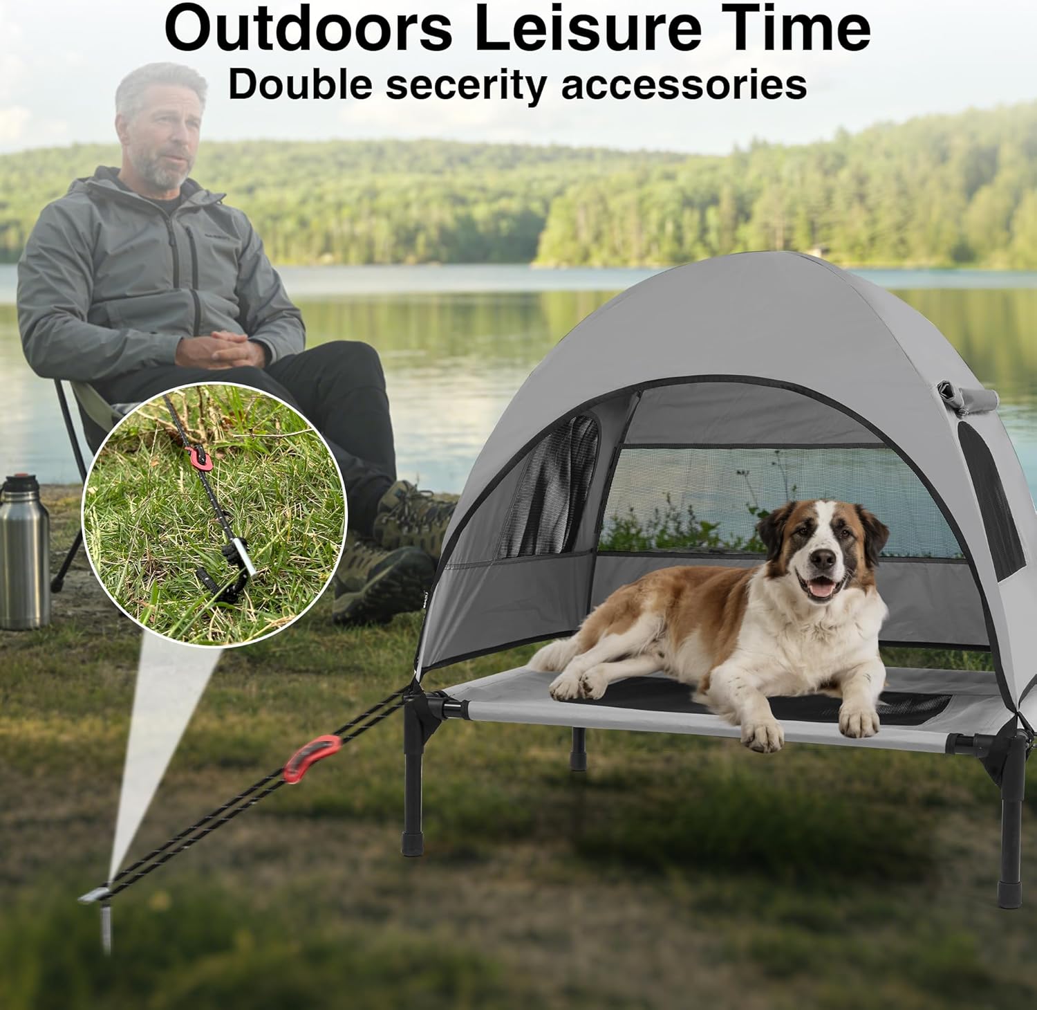 Elevated Canopy Dog Bed – Off-Ground Cooling Cot for Camping