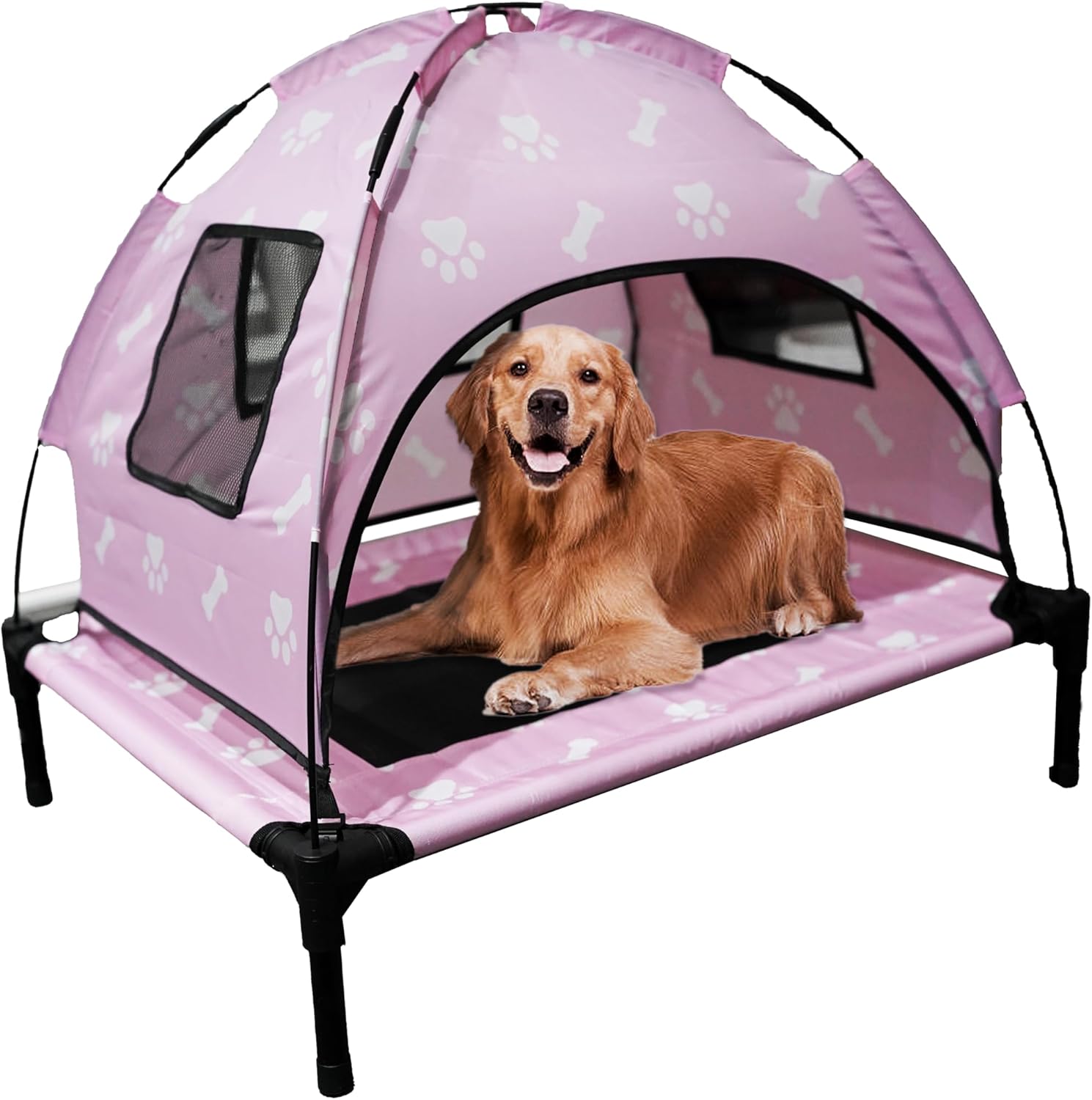 🌲 Elevated Covered Dog Bed – 36″ x 36″ x 30″ – Dog Shade Canopy Lounger for Small & Large Dogs (Up to 110 lbs) – Portable & Durable – Cooling, UV & Water Resistant with Mesh Windows – Pastel Pink — Outdoor Dog Gear Review & Current Price