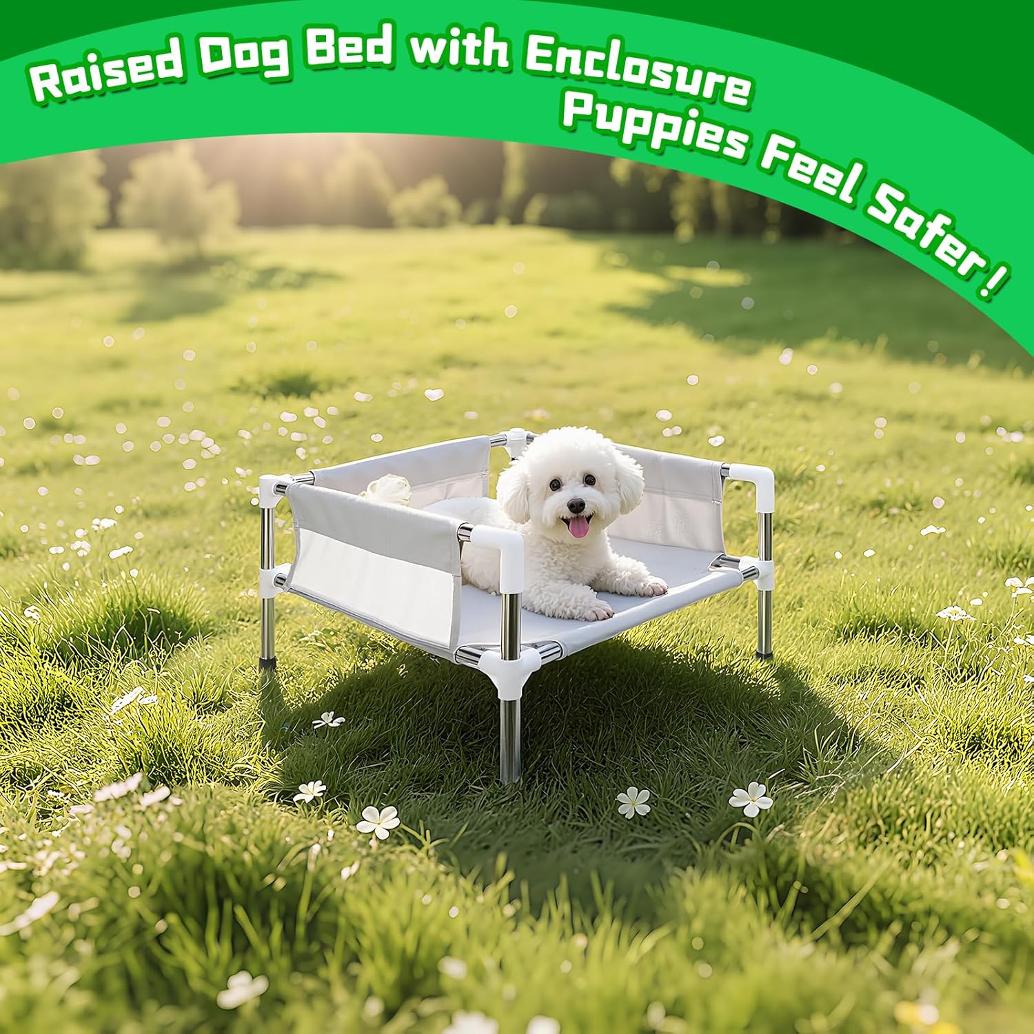 [Indoor/Outdoor Use]: This dog cot features a stainless steel tube frame construction that resists corrosion and fading, making it ideal for both indoor and outdoor environments. Whether in spring, summer, fall, or winter, or on balconies, backyards, porches, poolside, or campsites, it keeps your dog elevated off the ground, ensuring a dry, comfortable body and promoting a long, healthy life.