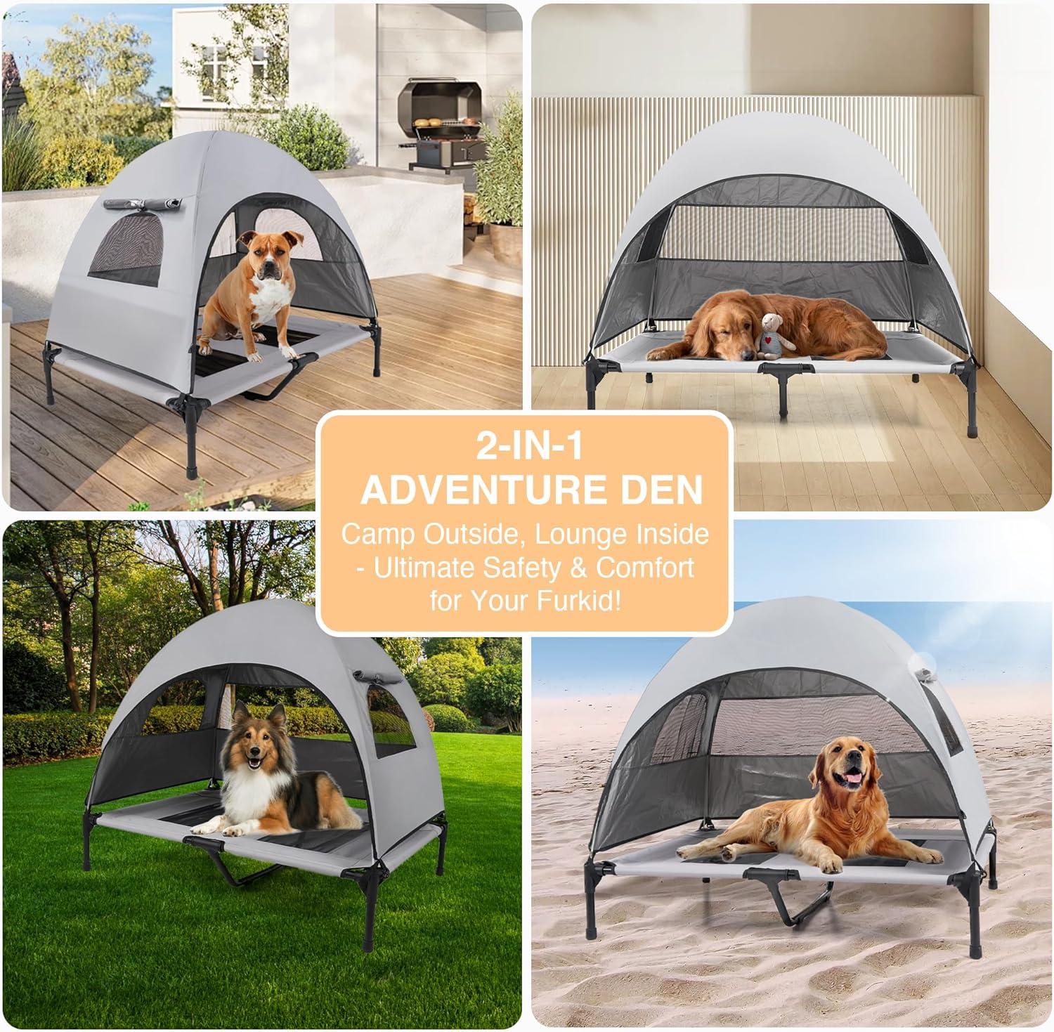 🌲 Elevated Outdoor Dog Bed with Canopy – Cooling Camping Tent, Removable Shade, Off-Ground Cot, Medium — Outdoor Dog Gear Review & Current Price