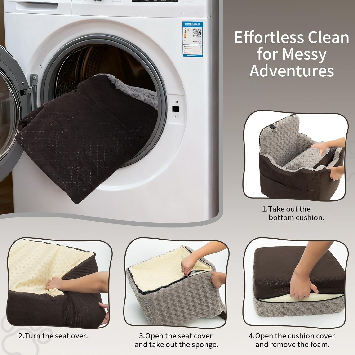 Effortless Installation & Complete Machine Washability – Get this easy to install dog car seat set up in seconds! The intuitive installation requires no tools. For easy cleaning, the entire seat cover is fully detachable and machine washable, ensuring a fresh and hygienic environment for your pet after every adventure.