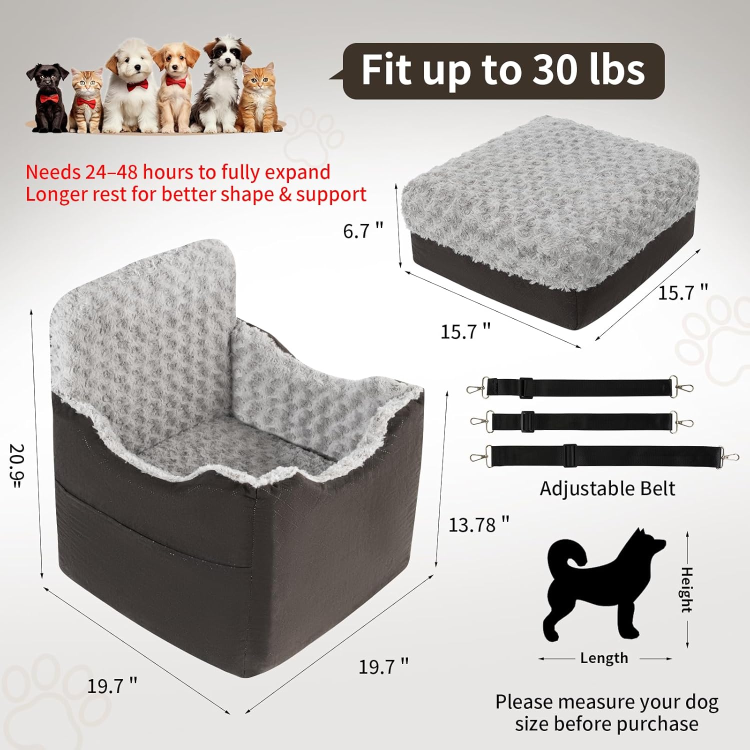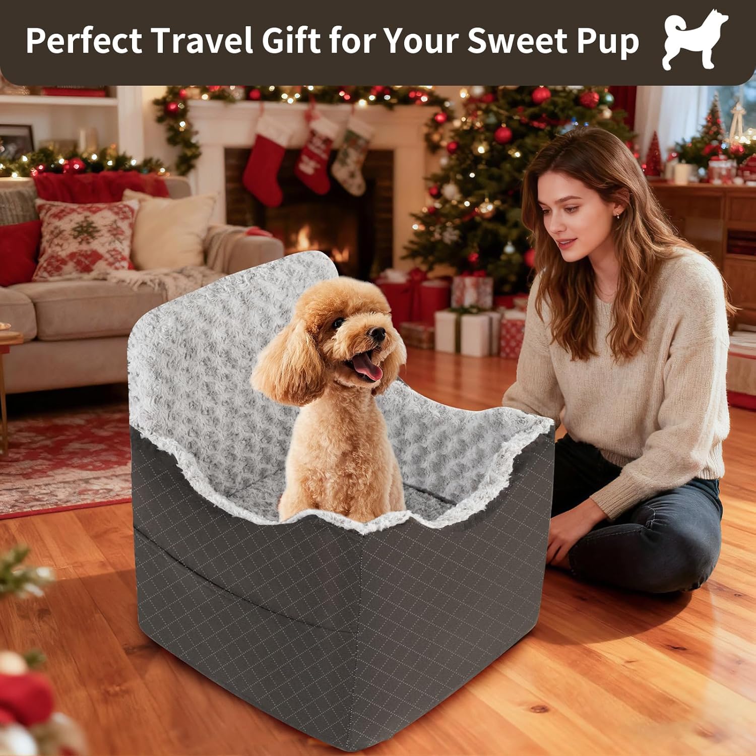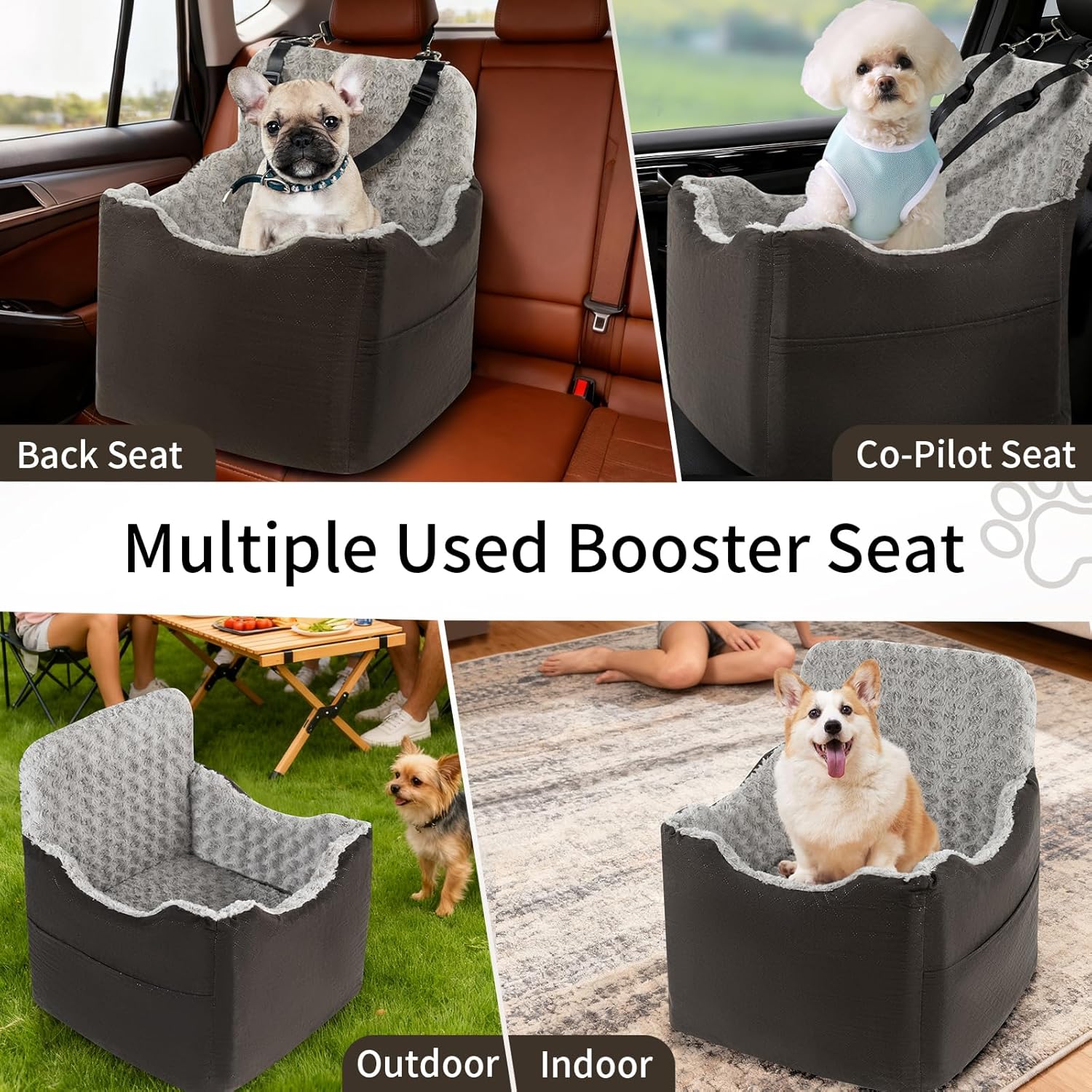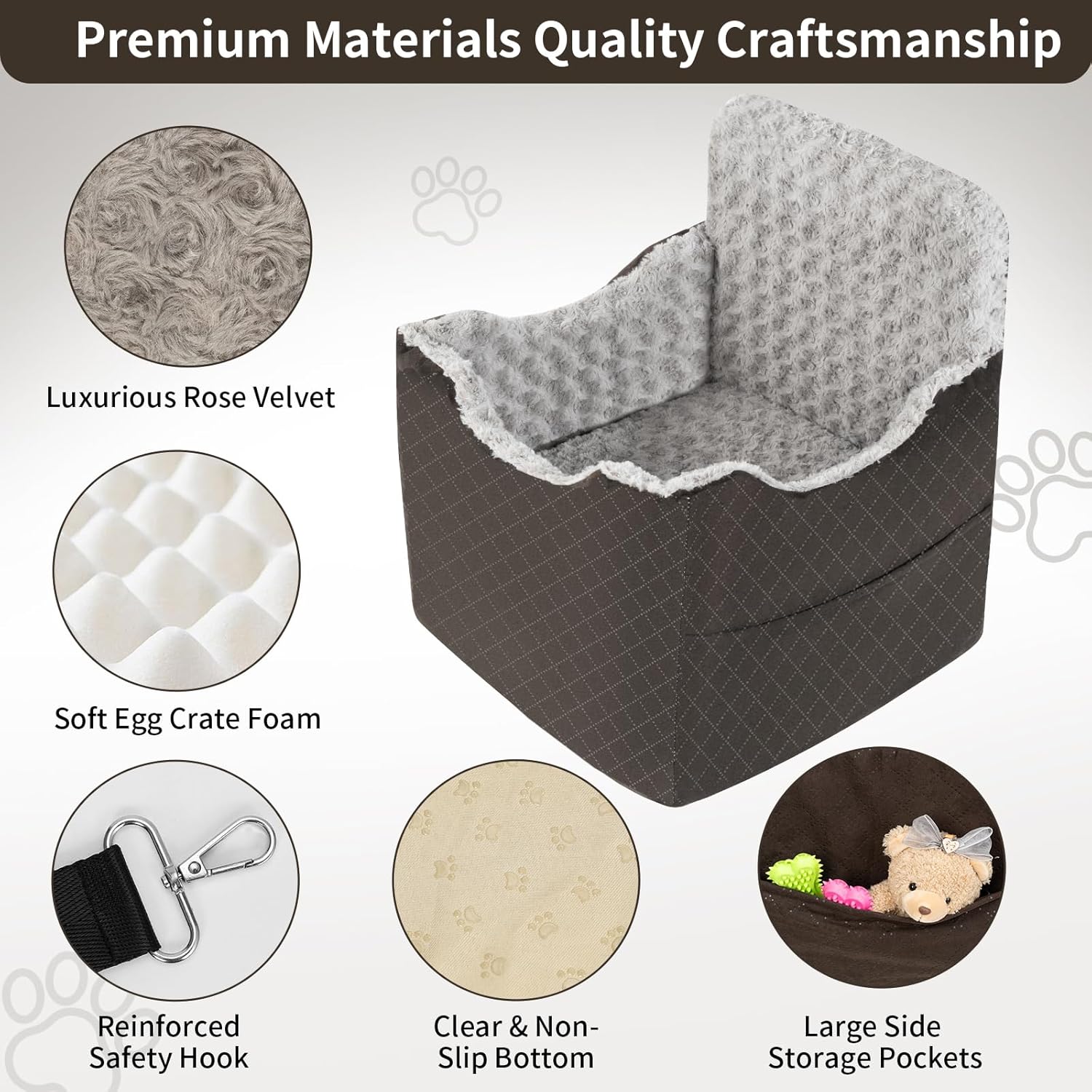 🧳 Dog Car Seat for Small Medium Dogs – 6.7inch Elevated Dog Booster Car Seats wih Soft Rose Velvet, Washable Travel Pet Carseat with 2 Safety Leashes and Storage Pockets(Grey/Black Coffee) — Dog Travel Gear Review & Current Price