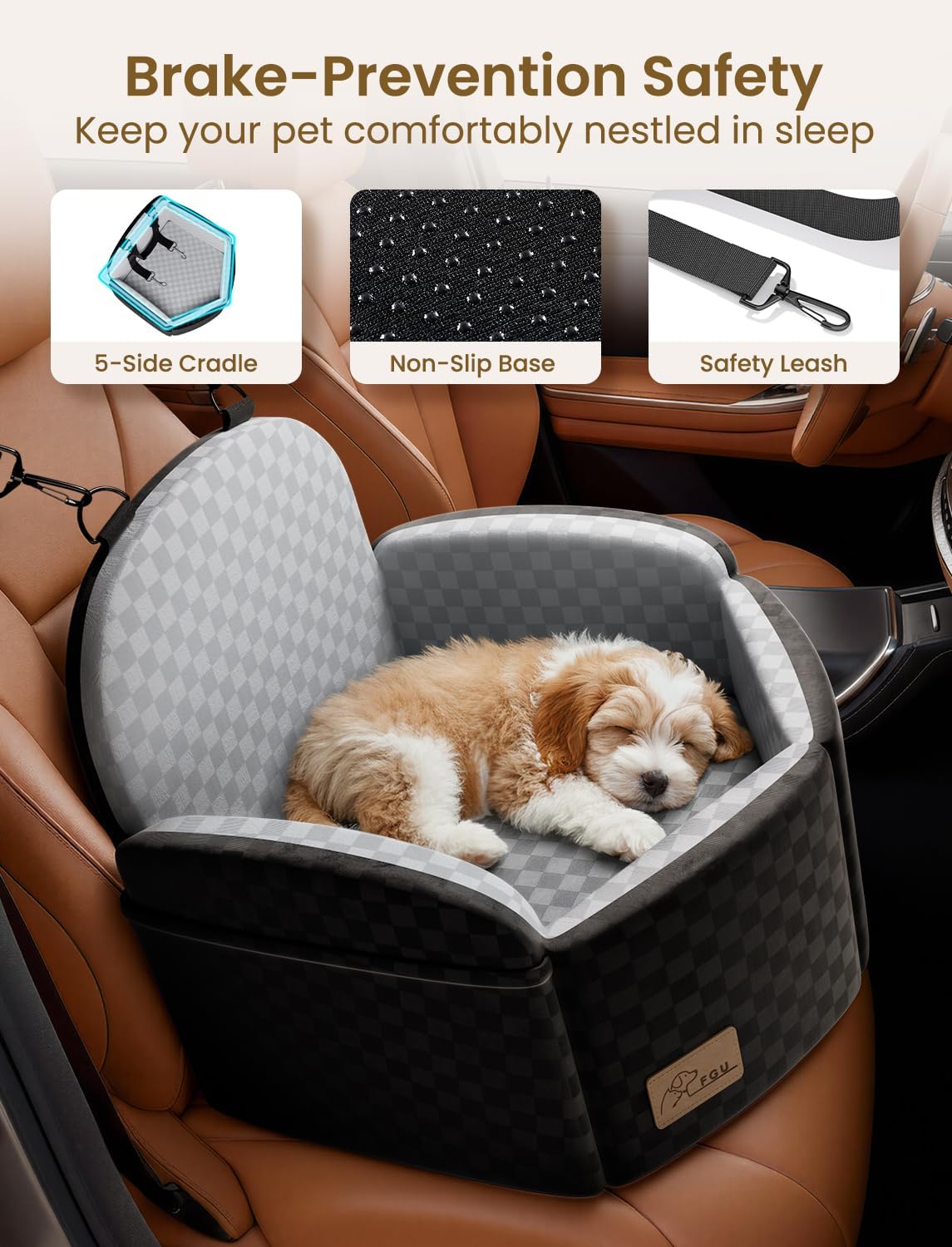 Ultimate Comfort: This small dog car seat is wrapped in soft, breathable plaid fabric and filled with high-density memory foam for exceptional comfort and support. The pet car seat’s gentle surface protects your dog’s skin, while the egg-crate foam base cushions road vibrations, delivering a smooth and cozy ride. Whether it’s a short trip or a long journey, your furry friend will travel in comfort.