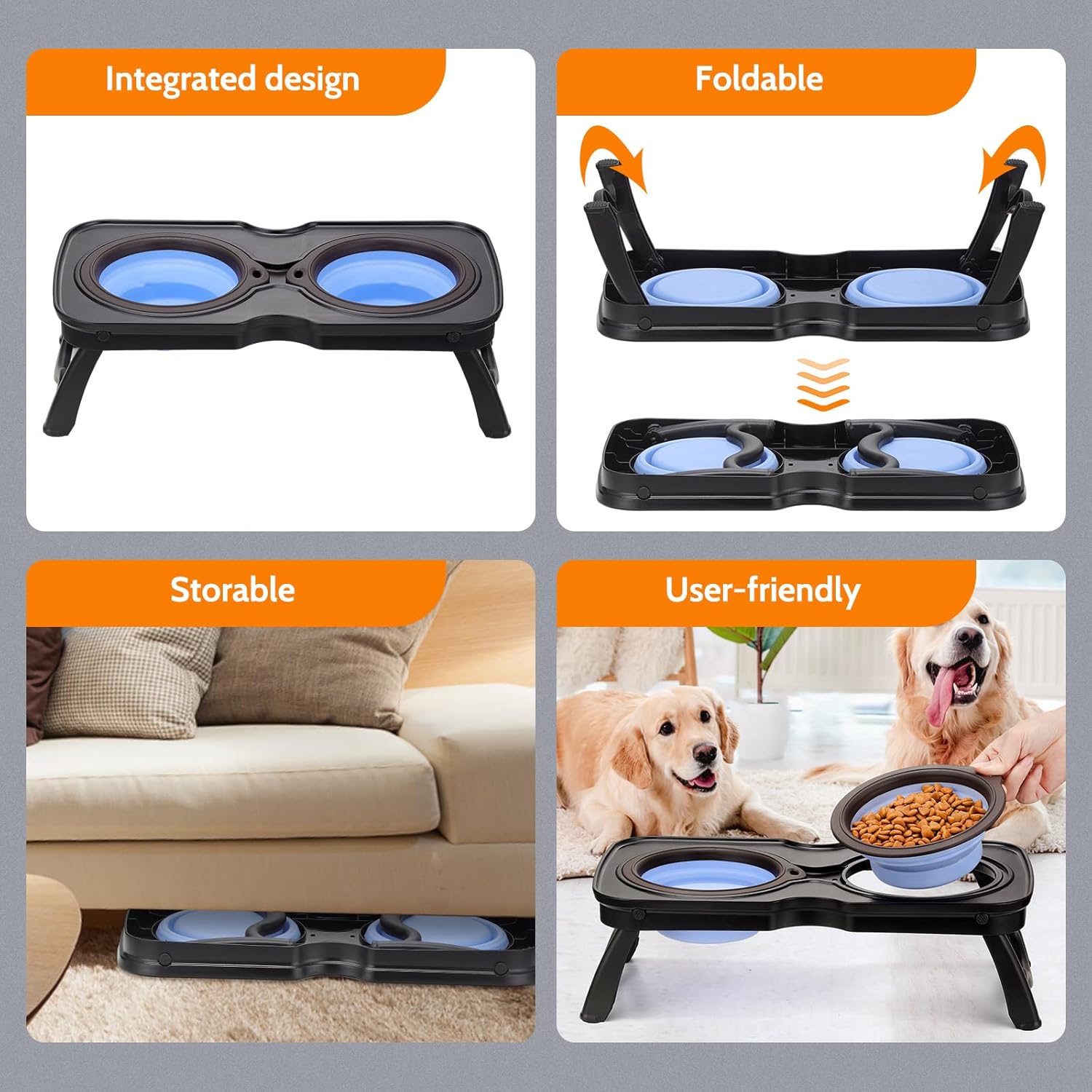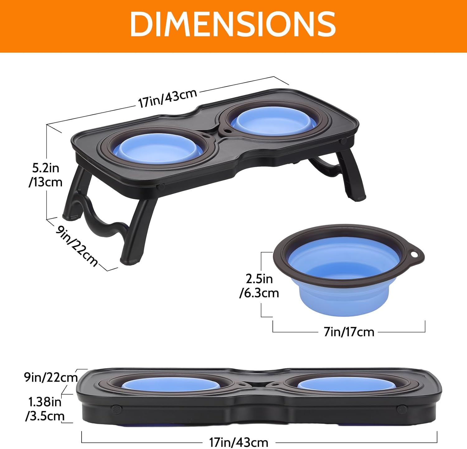 【Foldable & Easy to Carry】Dog bowl stand is lightweight and easy to carry, perfect for camping and visiting parks and other outdoor activities, easy to pack and store when not in use.