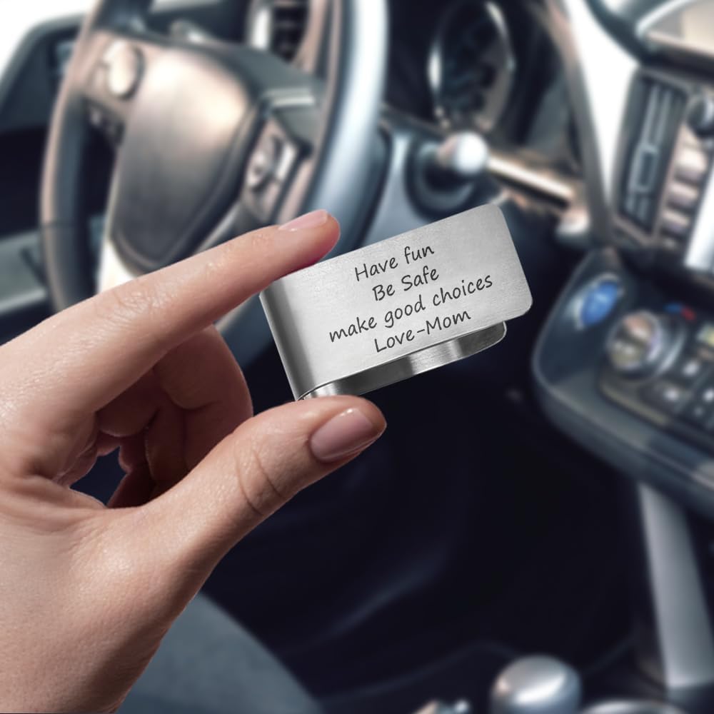 Engraved Stainless Steel Car Visor Clip: Fun Safety Reminder Gift