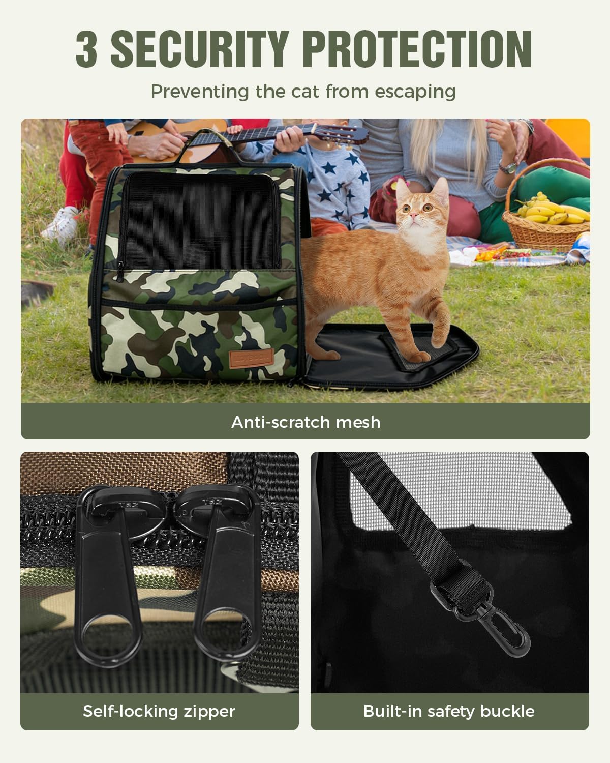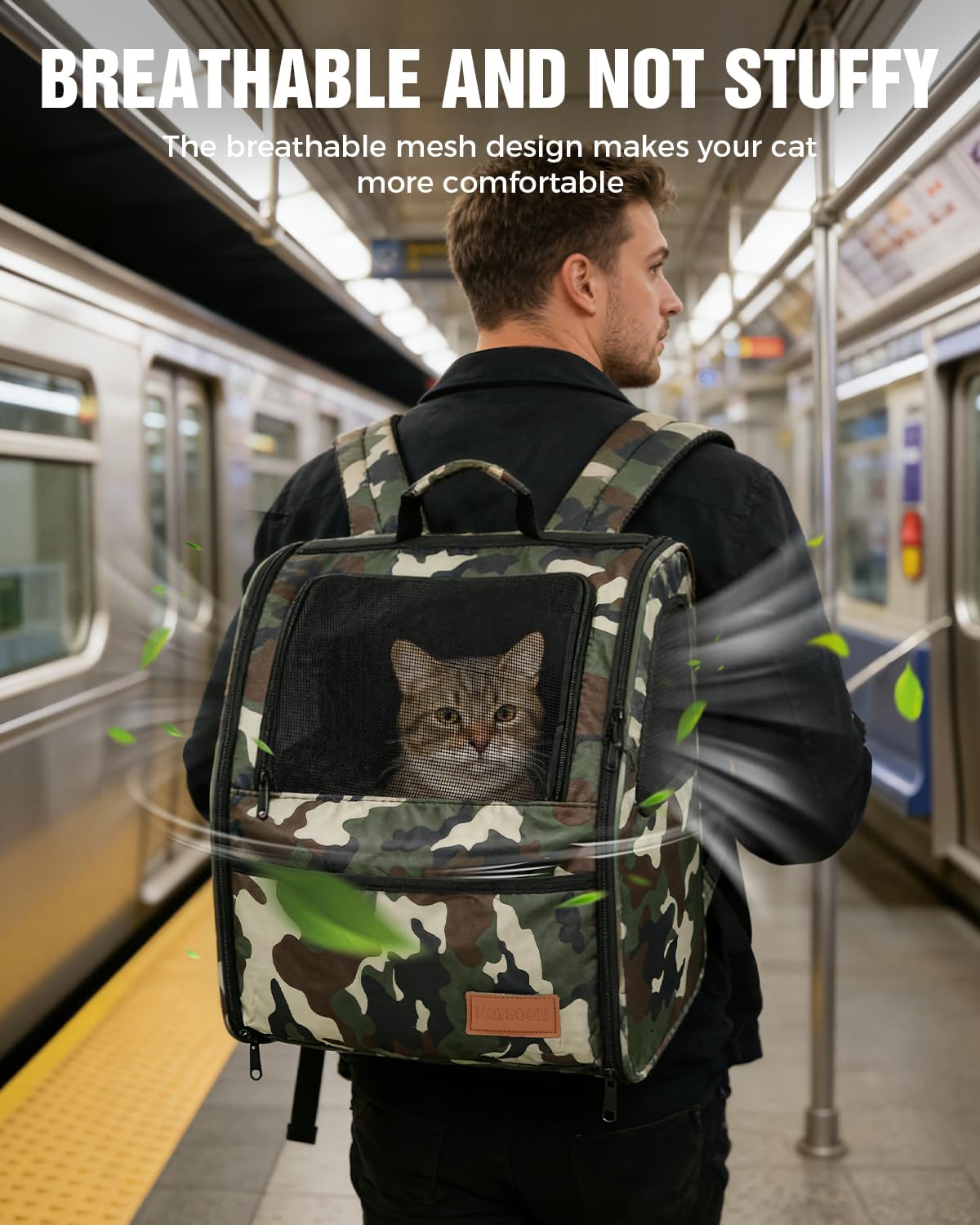 CAMOUFLAGE DESIGN HIDES WEAR: The unique camo pattern helps conceal scratches, dirt, and daily wear, keeping your dog carrier backpacks looking clean and fresh even with frequent travel. A stylish and practical choice for city commuters, multi-pet families, and outdoor users