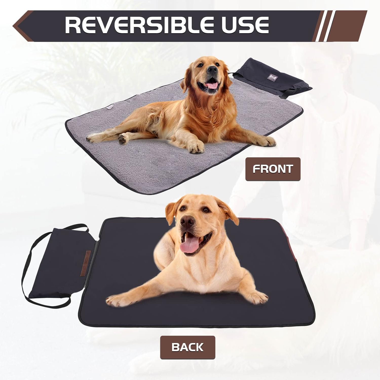 MATERIAL: The portable pet mat is made from sherpa and waterproof nylon fabric, water resistant even in raining days. Quilted with polyester layer, providing ultra comfort and softness. Soft sherpa cover is cozy and comfortable for pet. The dog bed mat combines the need for comfort and water resistance outdoor.