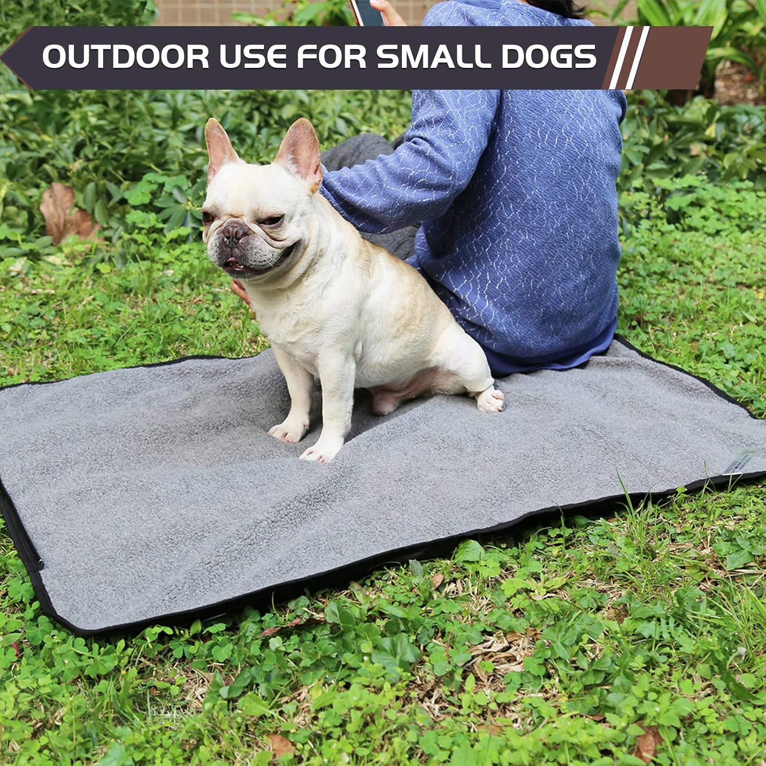 Made from durable waterproof nylon fabric on the back and polyester inside layer, offering your pets comfort and softness.Used as dog mats for sleeping indoor and outdoor, puppy and cat outdoor bedEquipped with refined stitching, scratch resistant and claw resistant, but not recommended for aggressive chewers.Designed with portable removable bag with zipper, easy to carry.Easy to clean off with a damp cloth in hand wash or use hose dirt off to clean.Unfold in large size of 39”*28”, can be packed in the drawstring bag, easily take out.Great as a camping mat, sleeping mat for pets, perfect for outdoor activities.Great for car seats, lawn, beach, indoor or outdoors for a mat or blanketsYour pet will love the comfortable touching on his/her body, and you will be enjoy the day and night with it.Three colors for options.