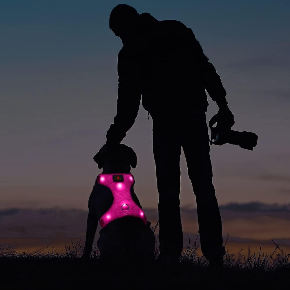 Flashseen Led Dog Harness offers super bright light with 5 lights(S) or 6 lights(M/L) to keep your dogs be seen & be safe in the dark at night.