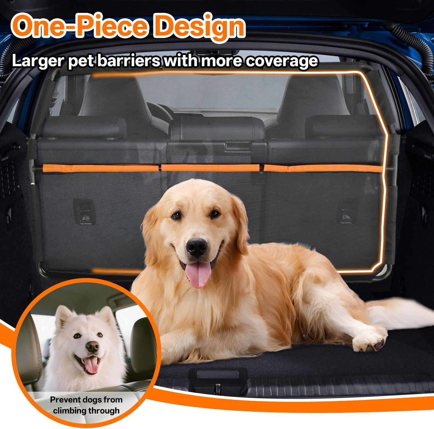 【Built to Last with Premium Materials】– Crafted from scratch-resistant nylon and reinforced PVC mesh, this car barrier withstands pawing, jumping, and daily wear while remaining lightweight and easy to clean.