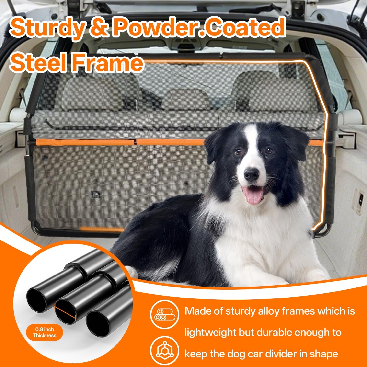 【Enhanced Driving Safety】– Keep pets securely in the backseat or cargo area with the escape-proof, one-piece metal frame design. No gaps mean no distractions—your dog stays put, and you stay focused on the road.