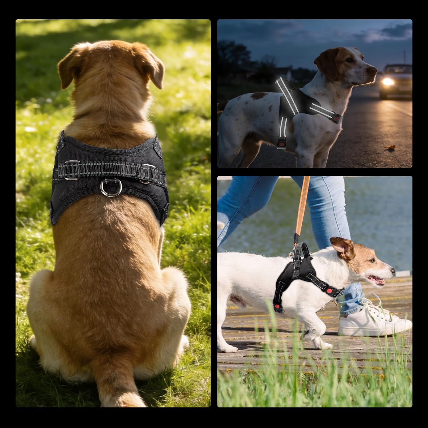 Escape-Proof No Pull Dog Harness with Reflective Strip – Adjustable, Black, Size L