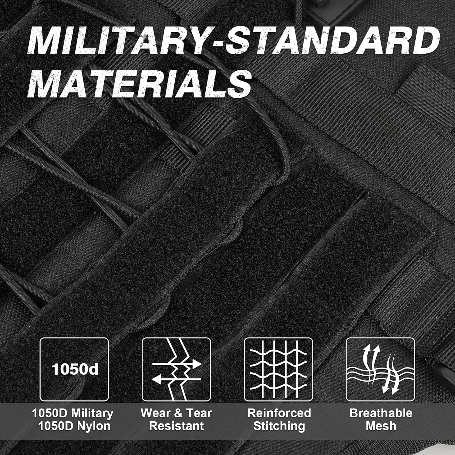 【Military-standard Materials】The heavy-duty dog harness is made of durable nylon and adopts an upper and lower two-layer structure. The outer camouflage pattern is 1000D nylon with sturdy stitching for extra durability, and the inner layer is a mesh material with excellent breathable, comfortable fit and no harm to the dog.