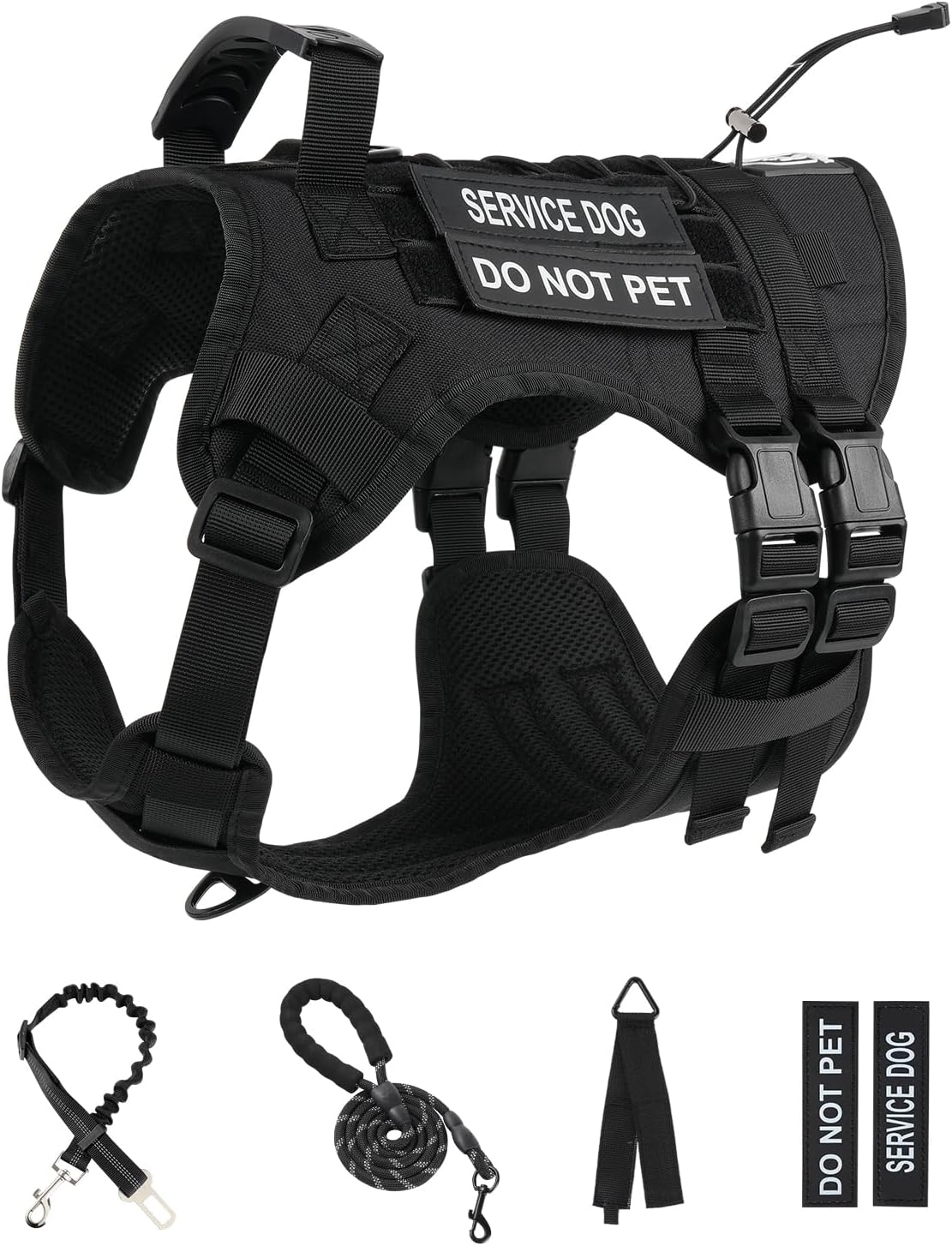 【Featured Accessories】The heavy duty dog harness includes 1 professional dog leash & 1 retractable car seatbelt & 1 storage strap & 2 service dog patches & 2 DO NOT PET Patches. This is perfect for most travel scenarios without the need to purchase other accessories.