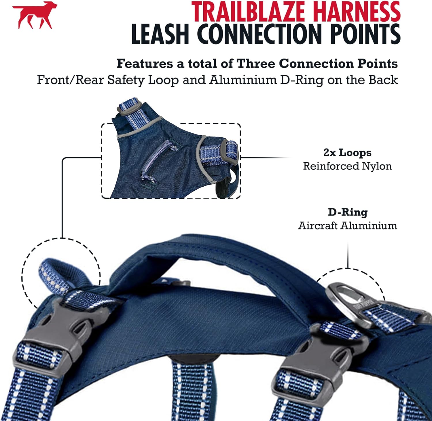 CUSTOMIZABLE FIT – With six points of adjustment, our TrailBlaze Harness offers a highly customizable fit for dogs of all shapes and sizes. This advanced adjustment system enables a secure fit without restricting movement, providing optimal comfort and security.