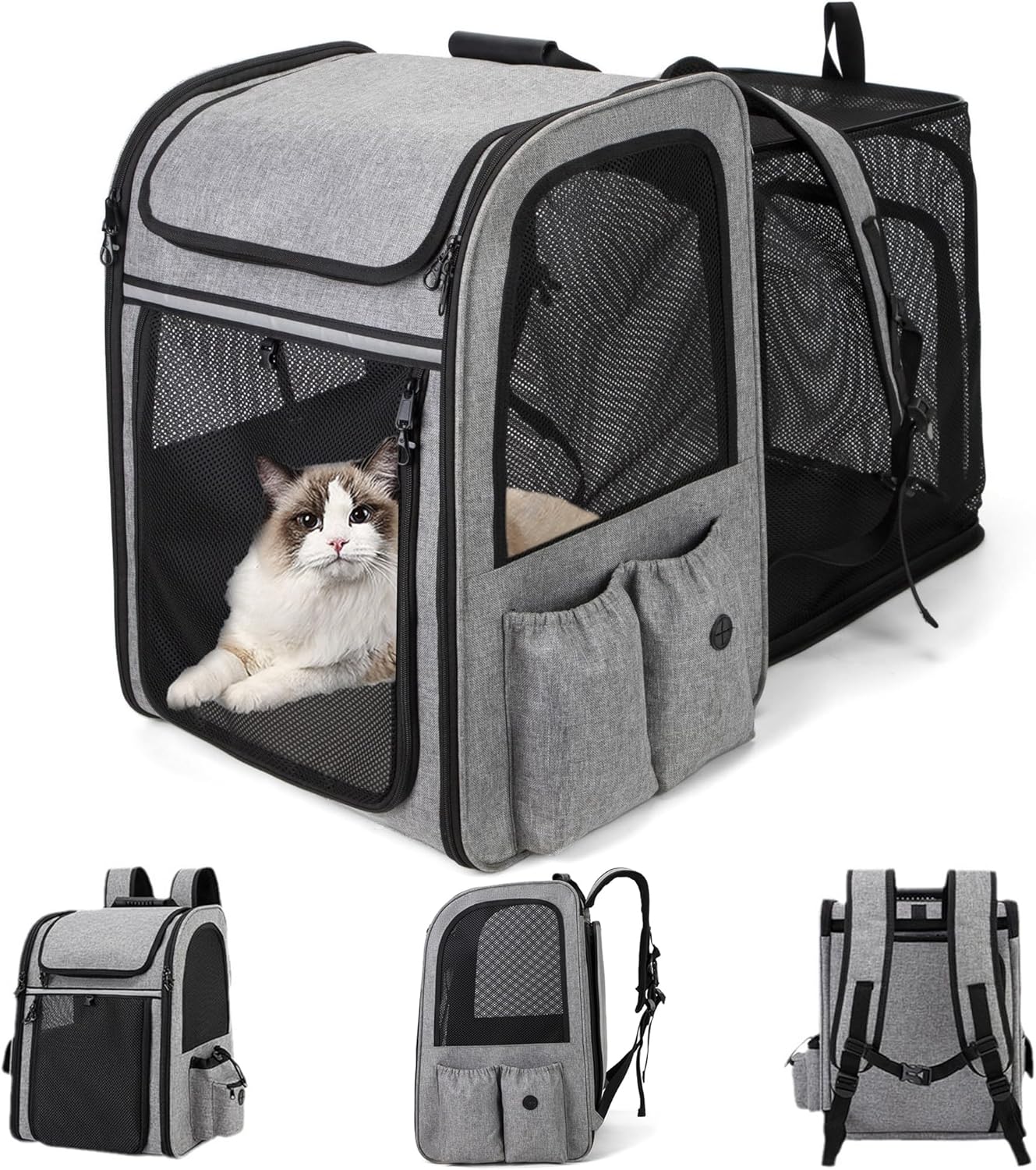🌲 Expandable Cat Carrier Backpack – Spacious for Up to 33 lbs Large Cats Small Dogs – Two Room with Dual Side Mat – Airline Approved for Multi Pet Family Travel – Grey — Outdoor Dog Gear Review & Current Price