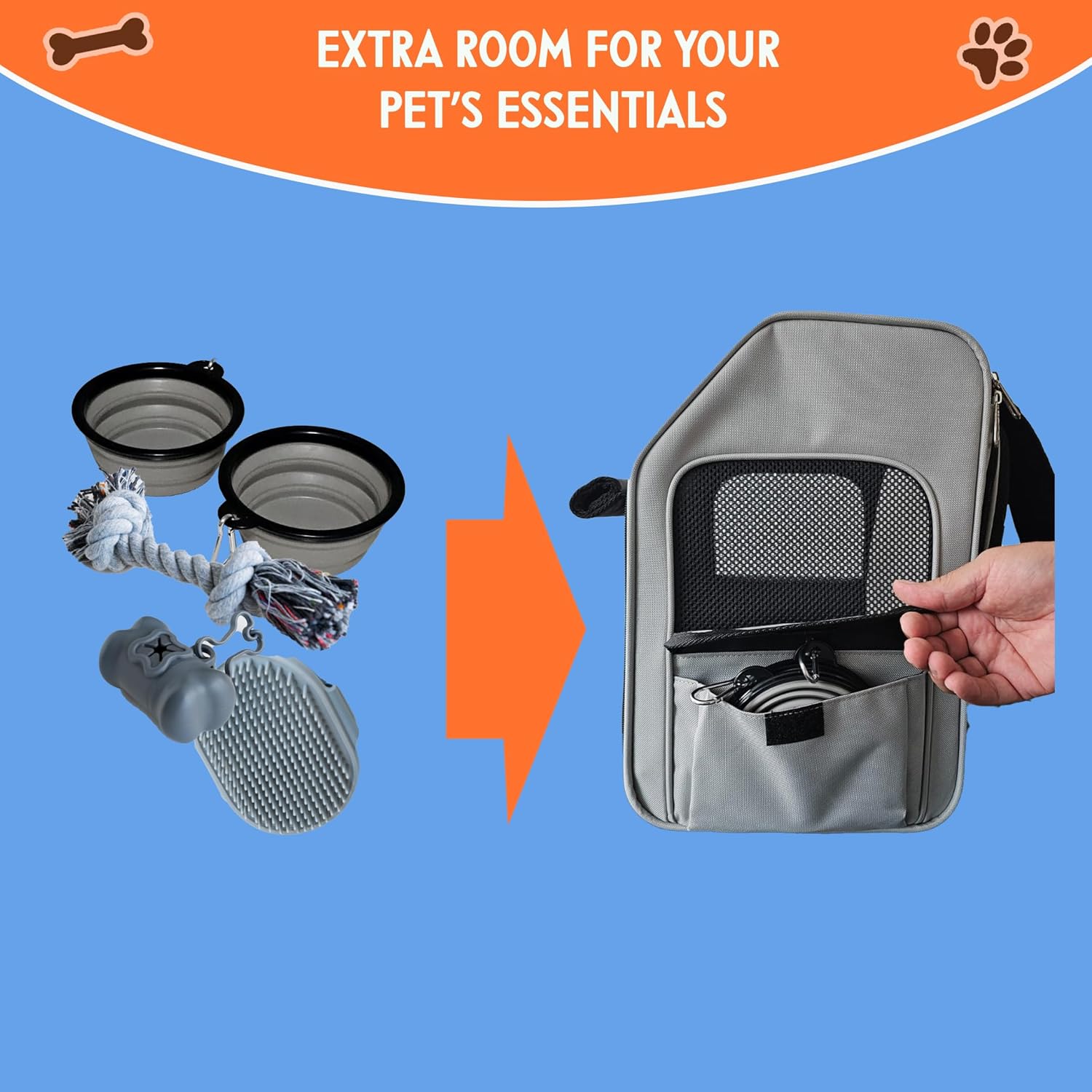 PRACTICAL STORAGE OPTIONS – Multiple exterior pockets hold leashes, toys, treats, waste bags, and water bottles for organized travel.