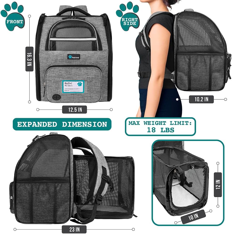 🧳 PetAmi Dog Cat Backpack Carrier, Expandable Pet Carrier Backpack for Travel Hiking, Small Medium Dog Puppy Large Cat Carrying Backpack, Airline Approved Ventilate Soft Back Support, 18 lbs, Light Gray — Dog Travel Gear Review & Current Price