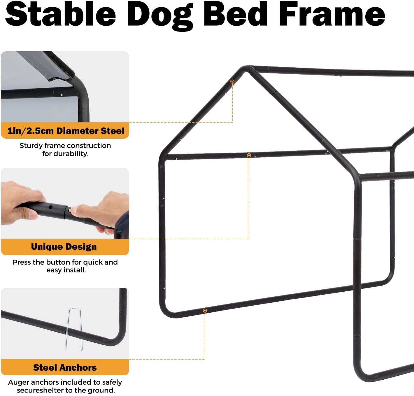 πŸ•πŸΎ Durable And Sturdy: The dog shelter frame is constructed of high-quality 1″ steel and features a premium powder coat finish that protects the dos shade from corrosion, and rust. This ensures that the dog canopy is sturdy enough to withstand any outdoor conditions and will last for years to come.