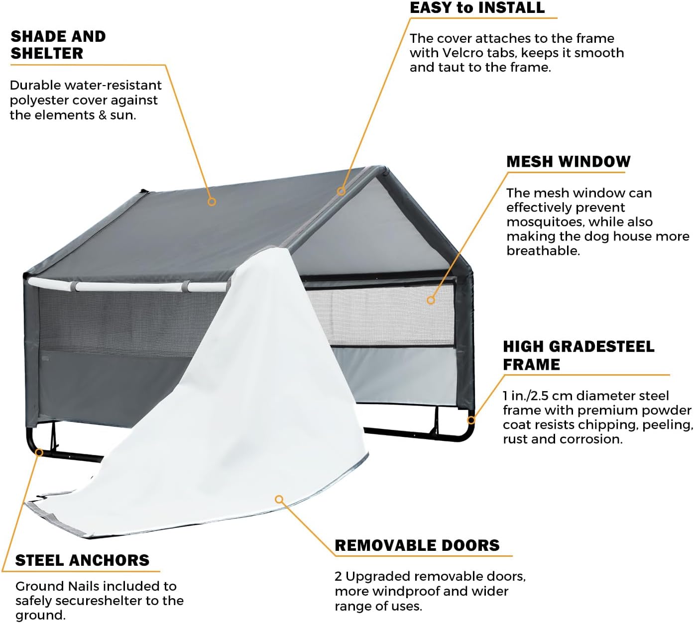 πŸ•πŸΎ Upgraded Removable Doors: Also equipped with two additional upgrade doors which attach to the frame with velcro tabs. Make the pet tent more windproof and wider range of uses while ensuring good air flow of the dog house.