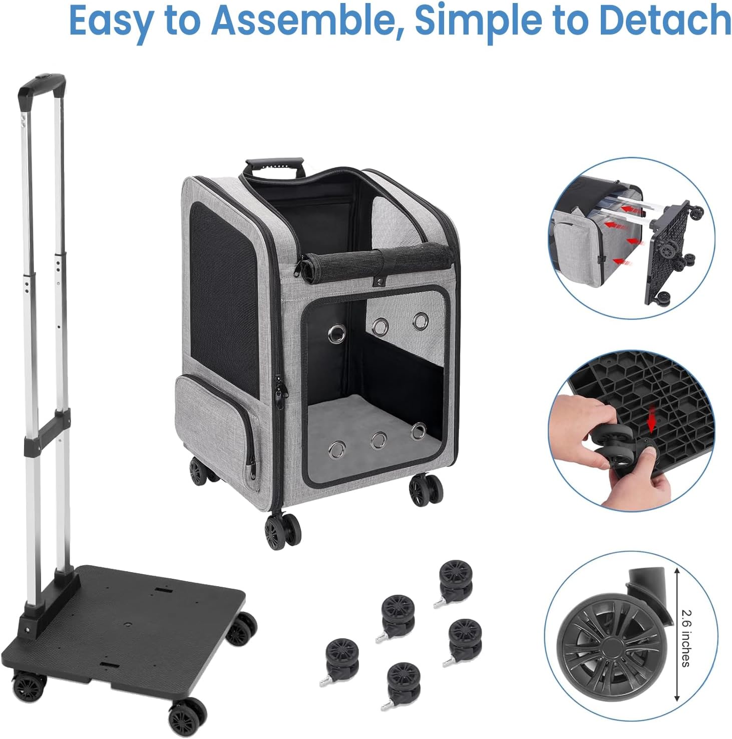 Extra Large Rolling Pet Backpack for Travel – Cats & Small Dogs