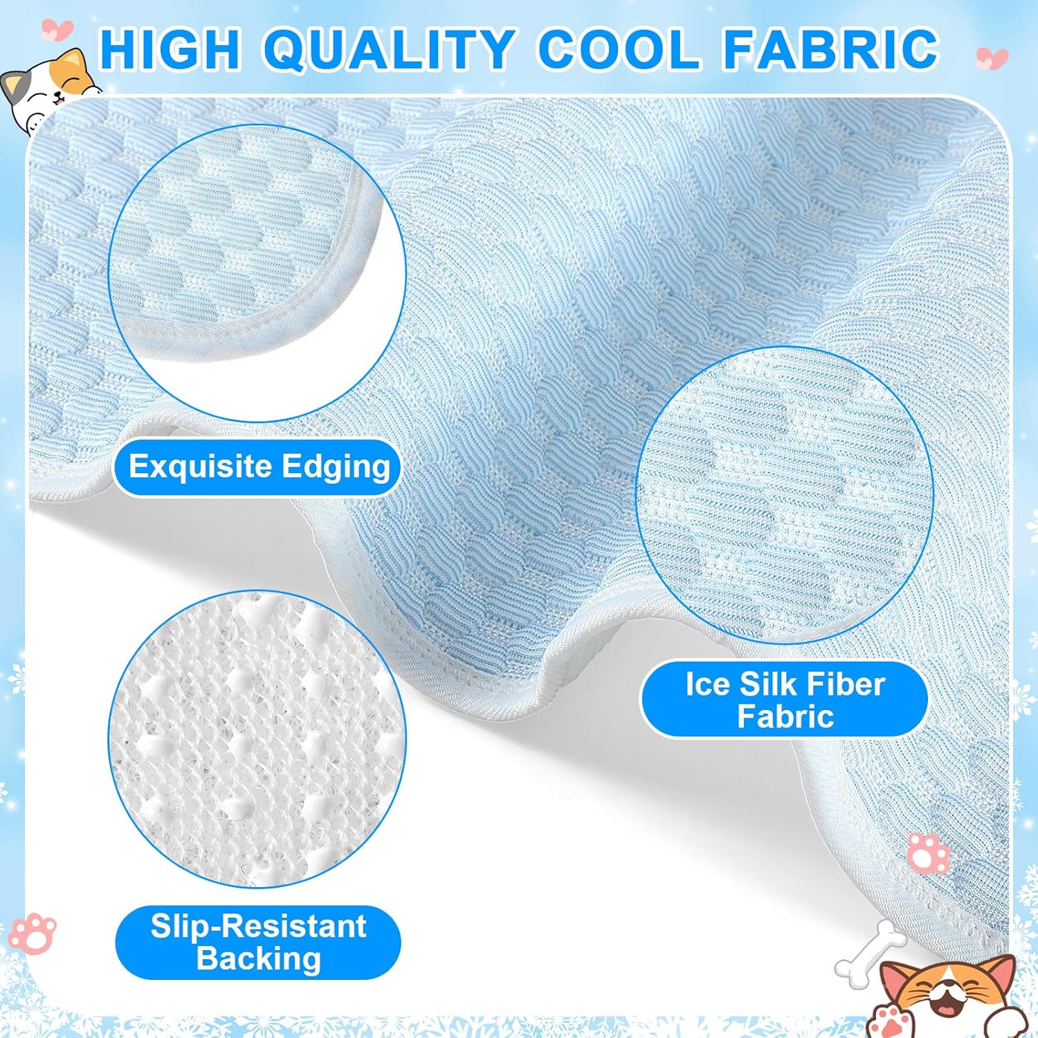 Quality Material: this dog cooling mat is made of ice silk fiber fabric, which is cool and breathable, promoting air circulation and regulating body temperature to keep your pet’s skin comfortable; In addition, the inner layer of the cooling mat is made of soft material for a comfortable feel; The bottom is designed with a silicone non slip fabric to effectively fix the mat and prevent slipping, providing your pet with a comfortable cooling experience