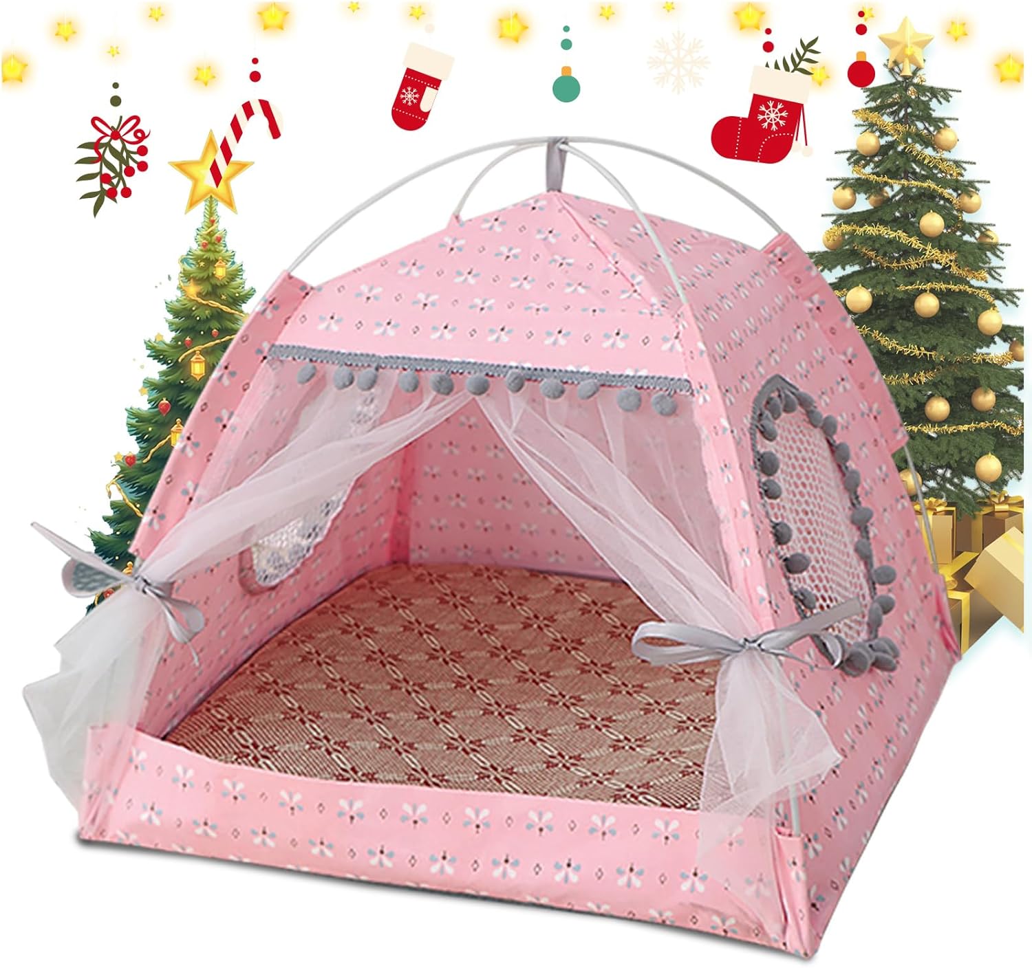🌲 Gigreinc Cat Princess Indoor Tent House Pet Dog Cute Floral Cave Nest Bed Portable Dog Tents (M:38x38x36cm/15x15x14inch, Floral Pink) — Outdoor Dog Gear Review & Current Price