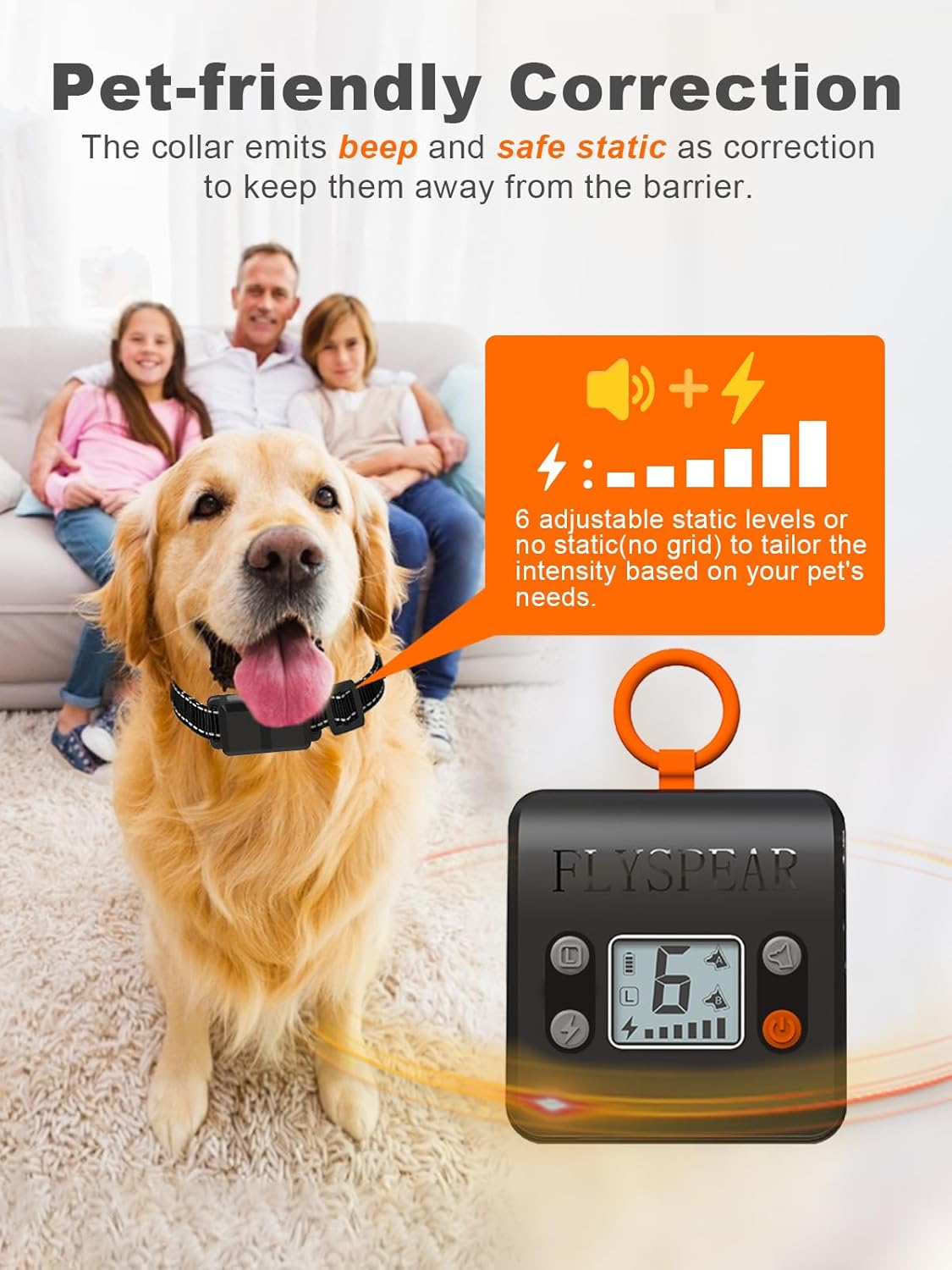 Safe and Pet-Friendly Correction:The barrier collar emits beeps when a pet enters a restricted area, followed by a safe static correction. There are 0 – 6 adjustable static levels to suit your pet’s needs. It prioritizes your pet’s safety while maintaining effective training.