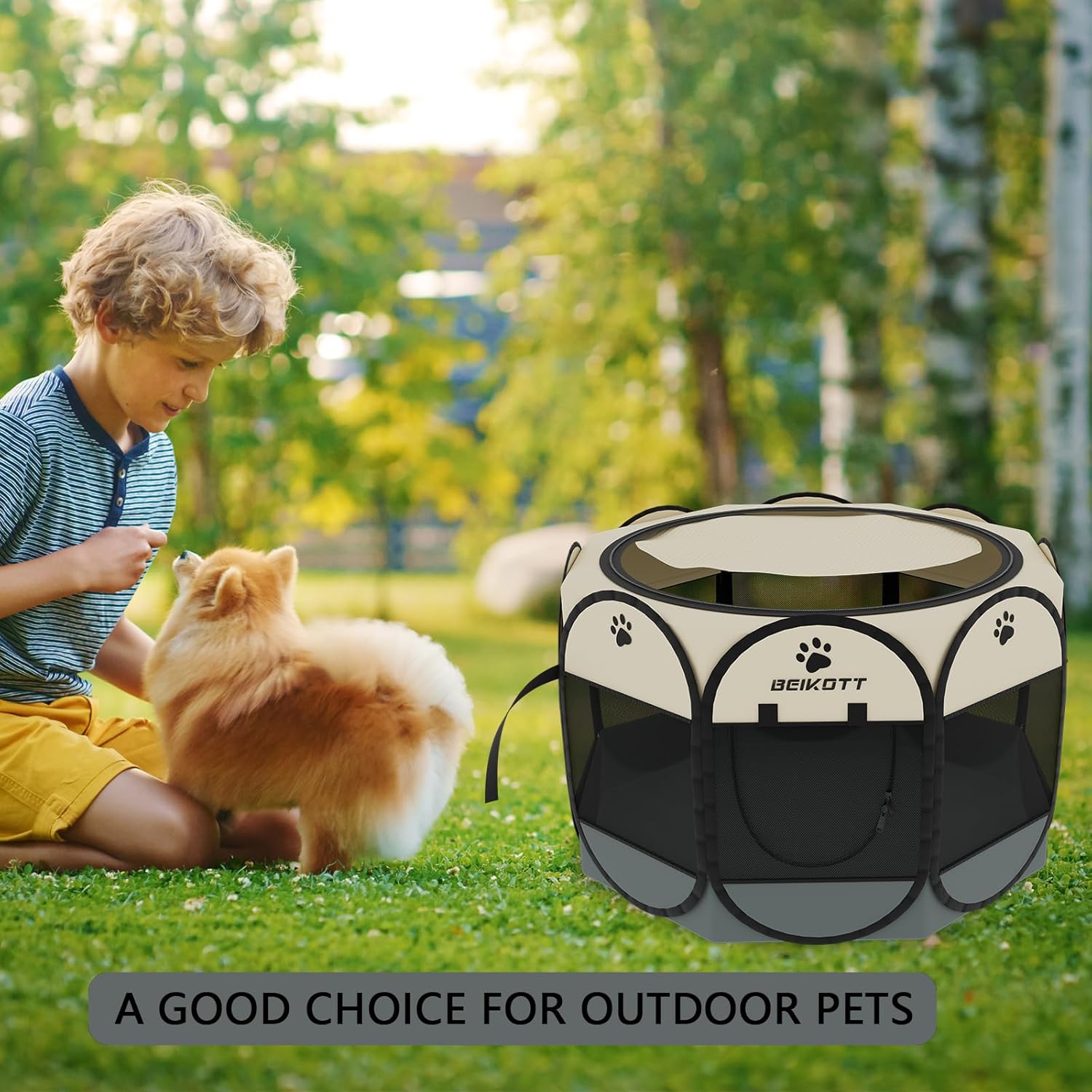 Premium Quality: Made of durable water-resistant material, 8-Panel design with protected seams and reinforced corners. Zippered door provides easy in/out access for your pet. Keep your pet safely inside everywhere