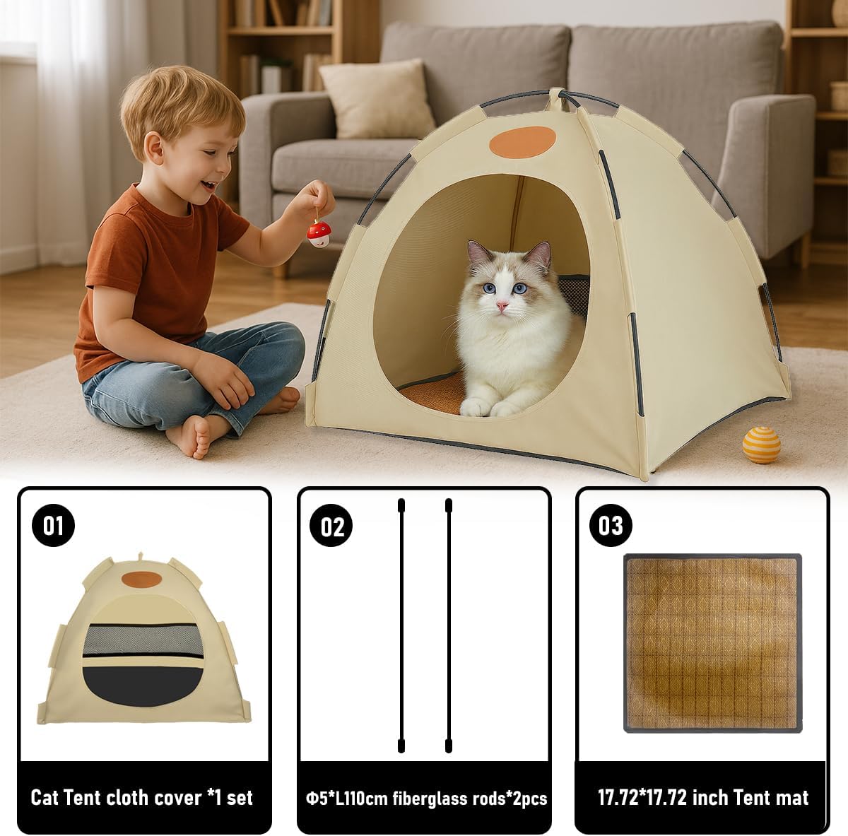 Easy to Clean & Portable Design: Featuring a removable and machine-washable cover, this pet tent is effortless to maintain. Its foldable design allows for compact storage and easy transport, making it convenient for travel or quick cleanup at home.