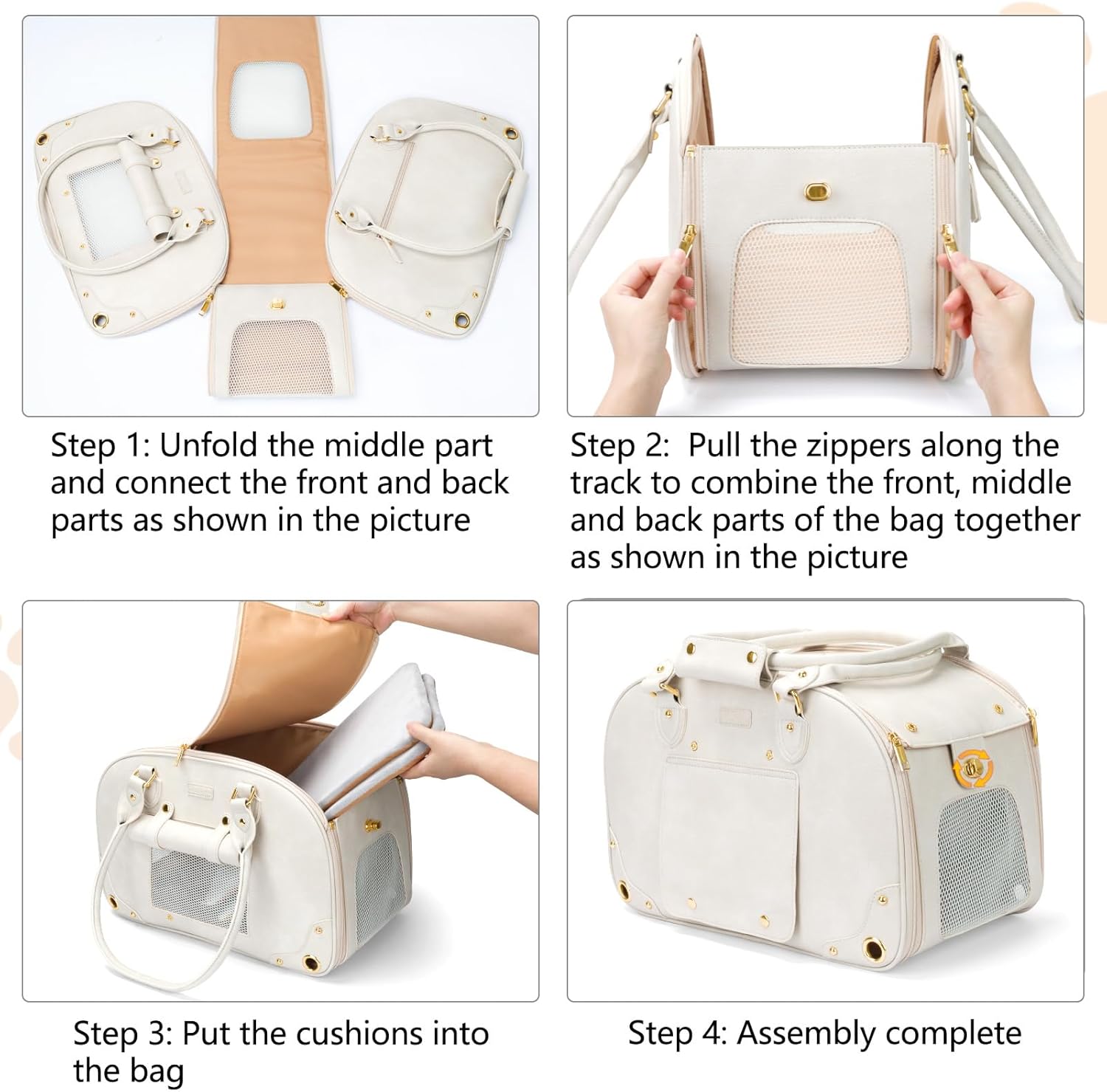 ✈️ PetsHome Dog Carrier Purse, Pet Carrier, Foldable Waterproof Premium Leather Pet Travel Portable Bag for Cat and Small Dog Home & Outdoor Small Beige — Airline-Approved Dog Carrier Review & Current Price
