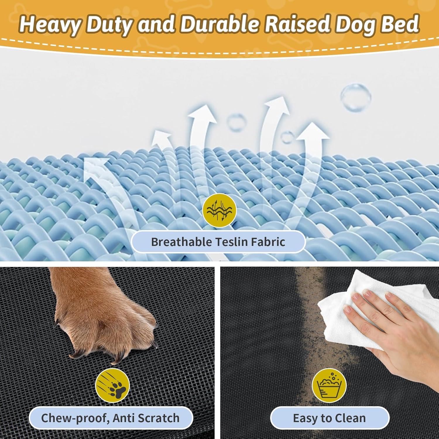 Heavy-Duty & Secure Support: Crafted with a reinforced steel frame and durable oxford fabric, this elevated dog cot supports up to 200lbs. Provides a stable, sag-free resting place for your large breed dogs, helping to relieve joint pressure and promote healthier sleep; Can withstand 2 dogs or 1 person dog playing and resting