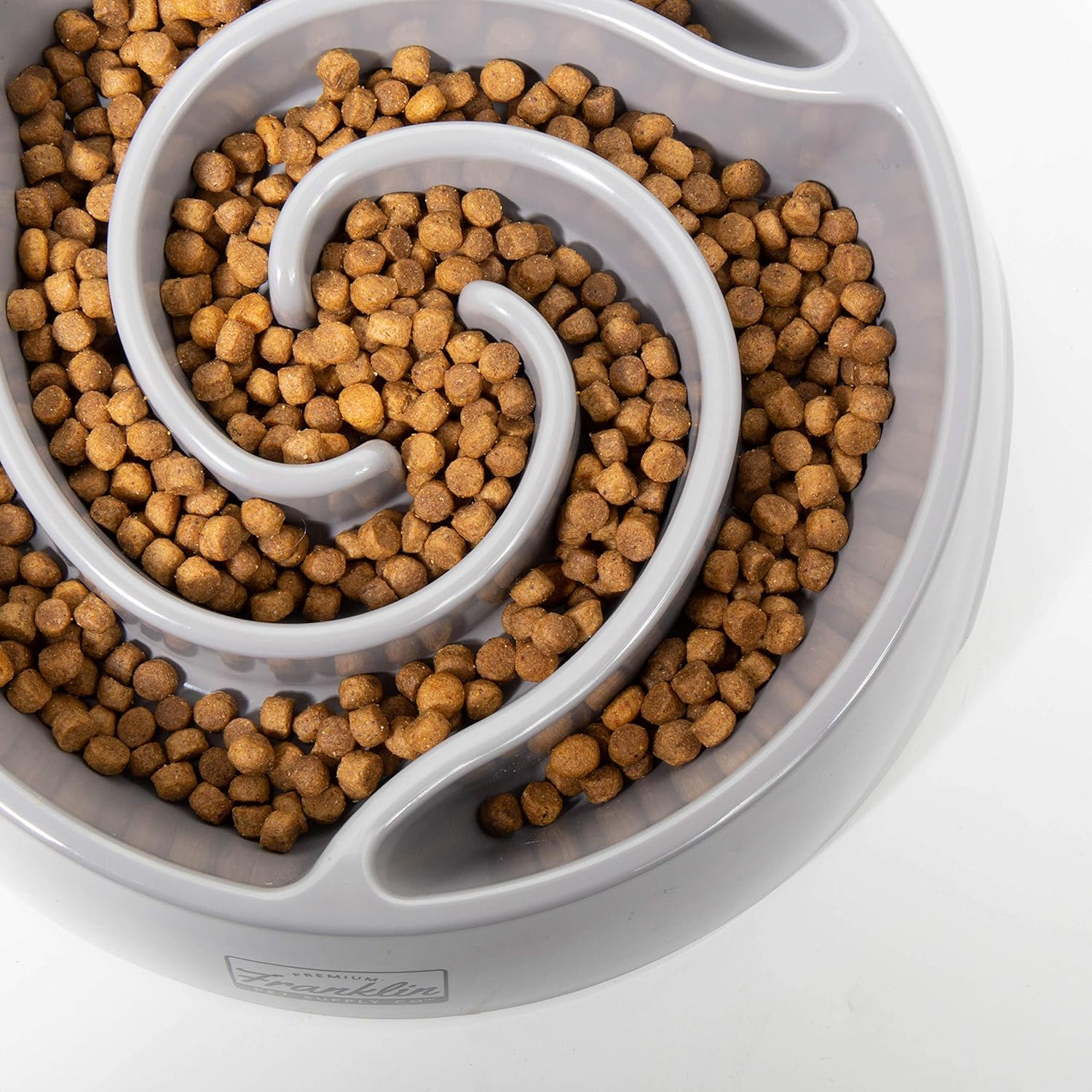 EASY TO CLEAN: The excellent design of the Franklin Pet Supply Tornado Slow Feeder Bowl makes any amount of food go further and the dog feels full on a smaller amount of food, and dishwasher safe!