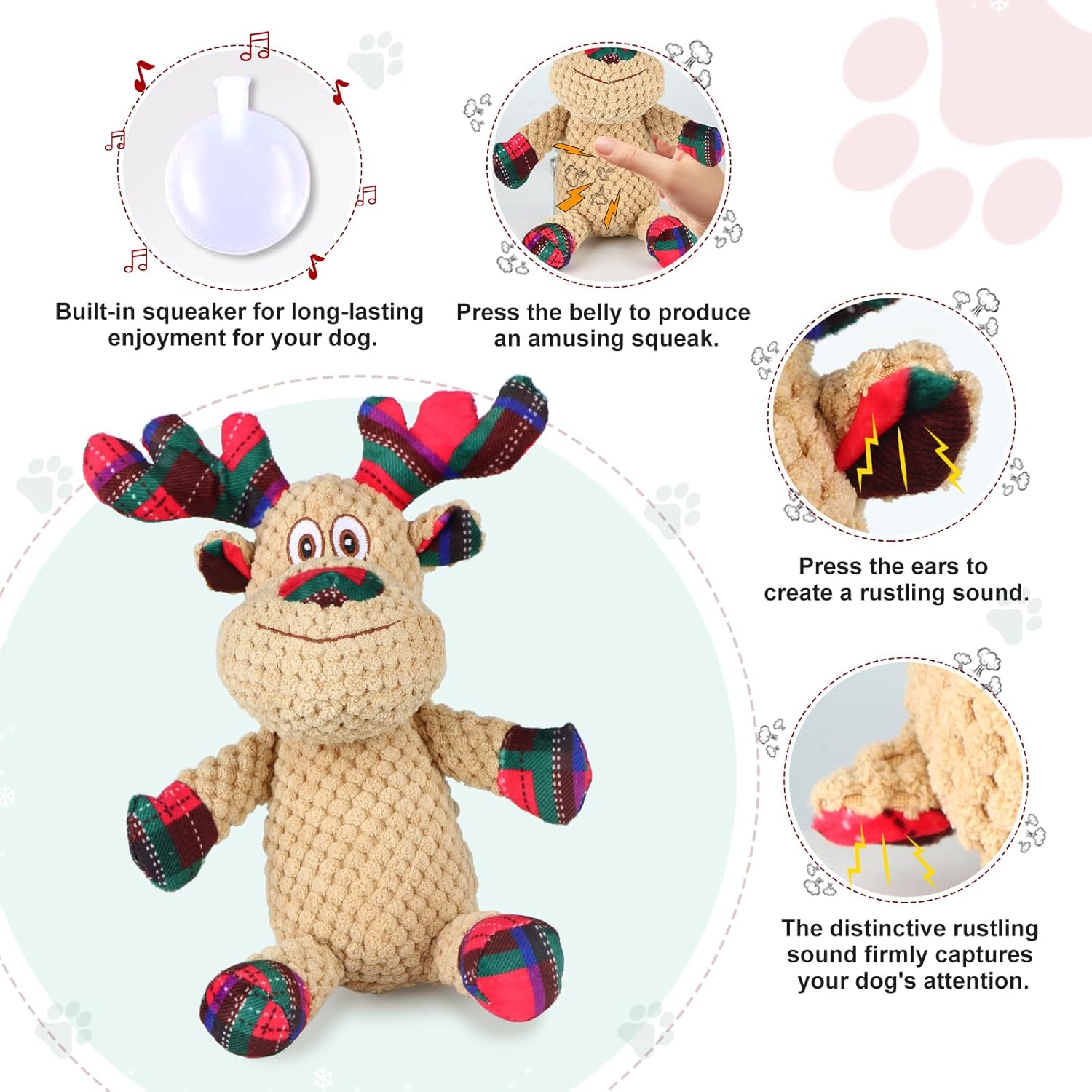Twice Sound Sources, Stimulating Hunting Behaviors: These puppy toys combine two playful sounds—a built-in squeaker and crinkle paper in the ears and tail. When chewed or shaken, it emits engaging noises that capture your dog’s attention, heighten excitement, satisfy their natural hunting instincts, and keep them happily occupied, thereby alleviating loneliness and boredom. Thus, they are great puppy teething toys for entertaining playtime.