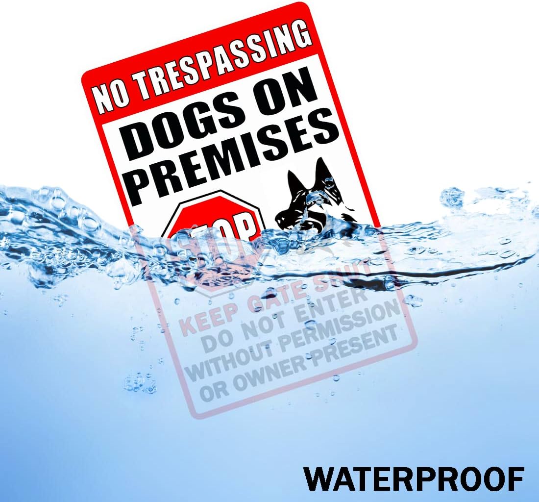 Interesting theme of warning signs : This metal tin sign with interesting theme patterns, It says, No Trespassing, Dog on Premises, Stop, Keep gate Shut do not Enter Without Permission or Owner Present, will be a great highlight, especially suitable for yard garden decoration, adding fun and color to your life lives.