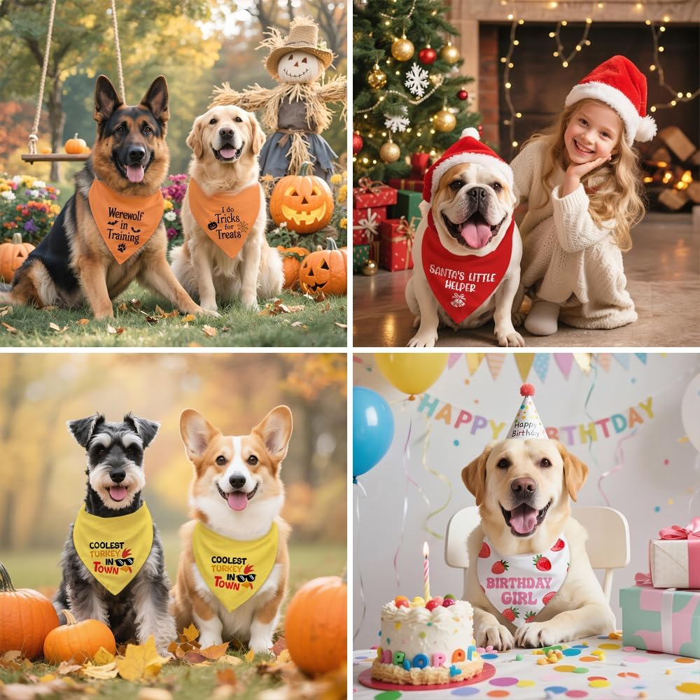 Fashionable and versatile: This dog bandana is suitable for a variety of scenarios. When taking a daily walk, it makes the dog the fashion focus of the street; when attending a pet party, it instantly improves the dog’s sense of style and makes it a party star; when at a family gathering, it adds a joyful atmosphere and records beautiful moments. In addition, in scenes such as taking photos, checking in, and traveling, it can show the cute side of the dog.