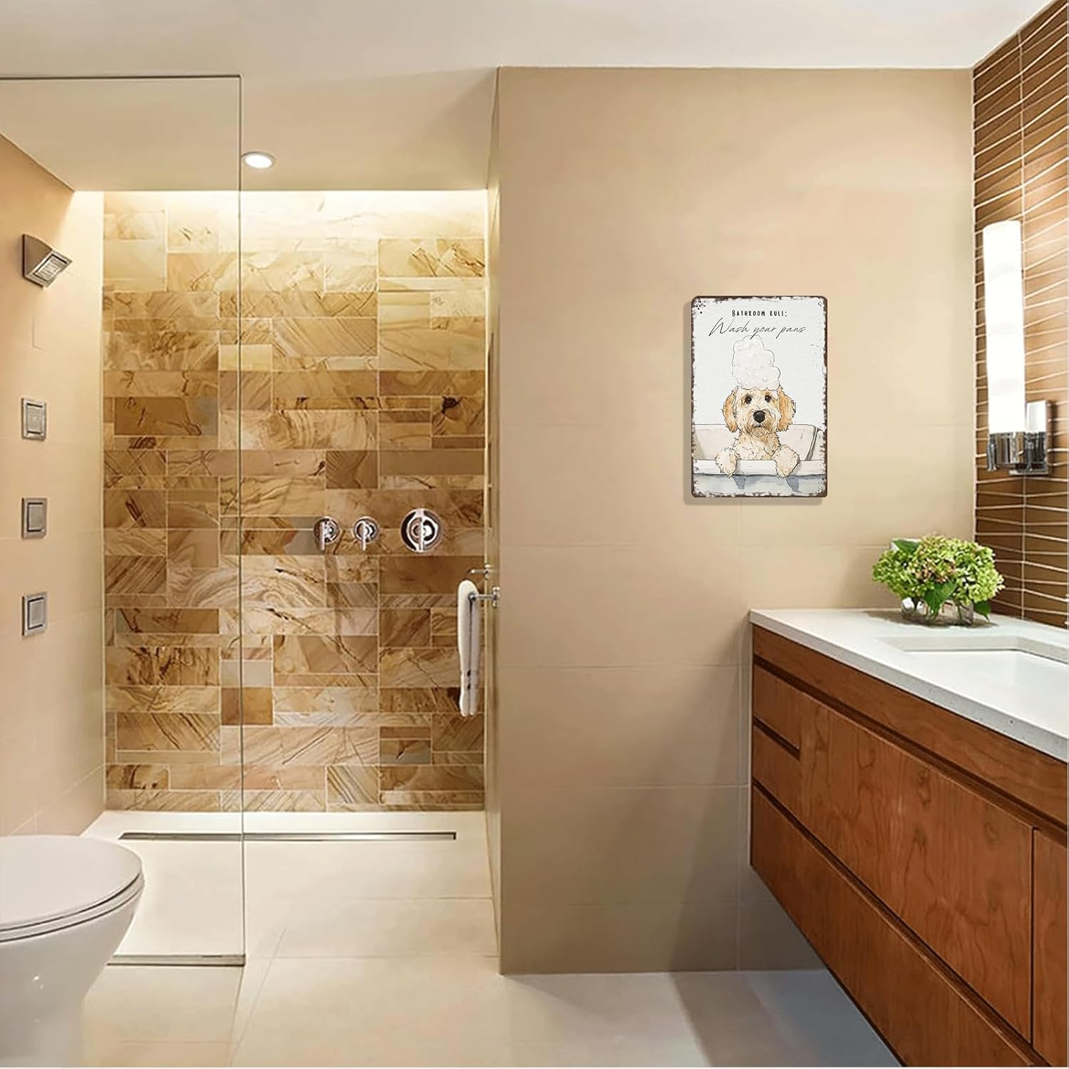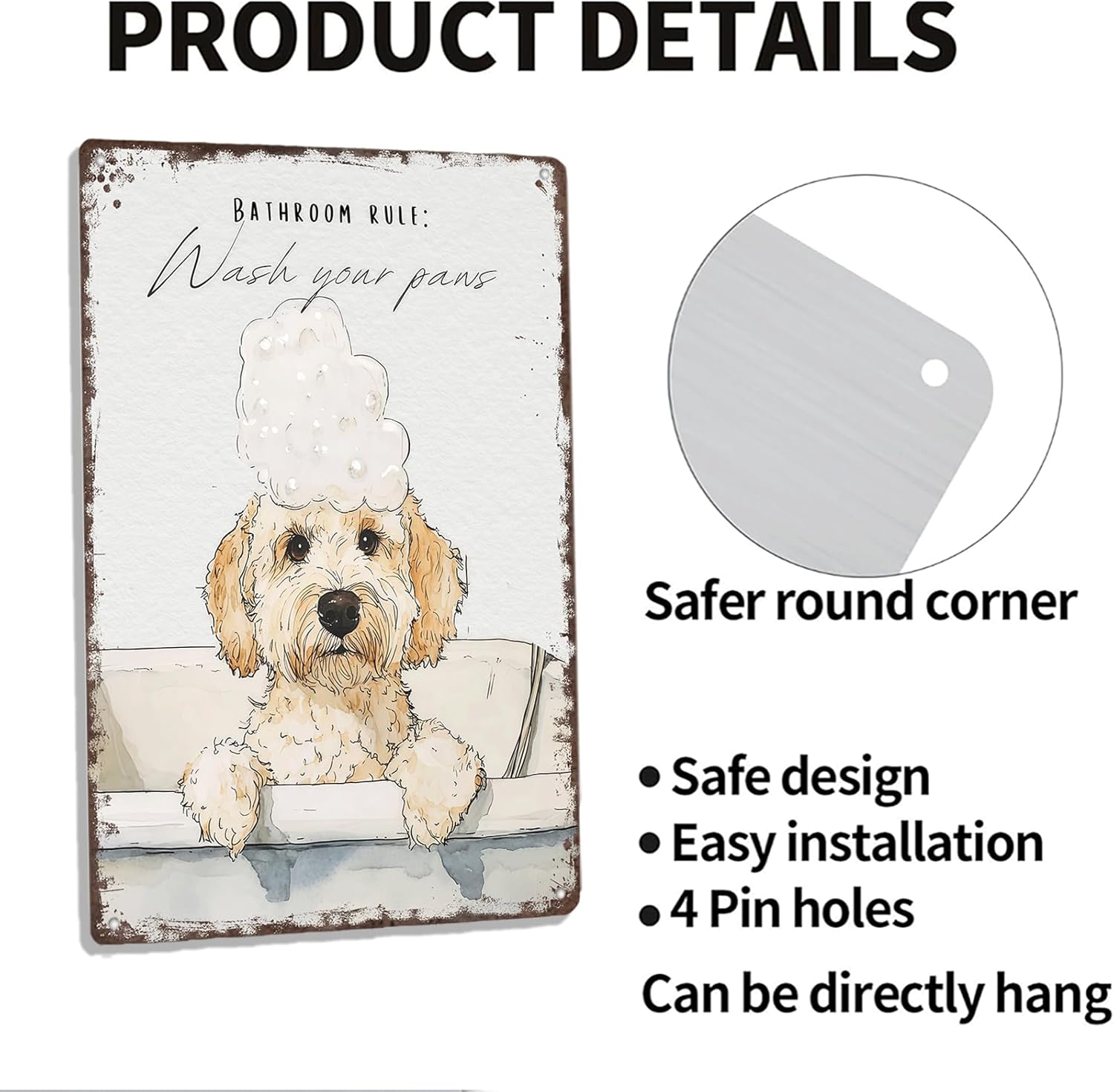 Retro Design: This Vintage Dog Bathroom Rules Metal Sign features a charming retro design, adding a touch of nostalgia to your bathroom or home decor.