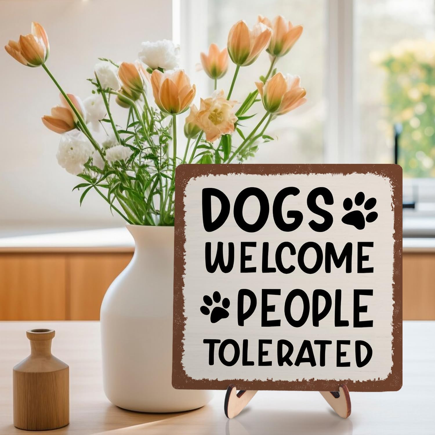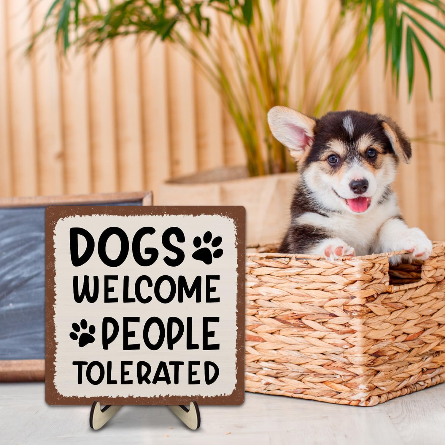 🧳 Dogs Welcome People Tolerated Sign Funny Wooden Plaque Signs Dog Rules Decorative Plaque for Home Office Farmhouse Decor Dog Lovers Gift — Dog Travel Gear Review & Current Price