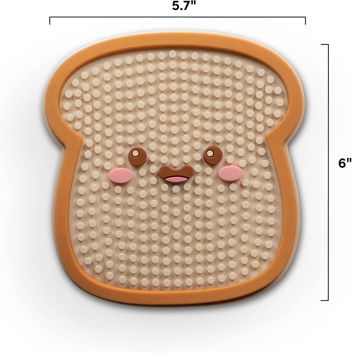UNIQUE DESIGN: Simply spread peanut butter (or similar spreadable snack) on the “bread” and adhere to any smooth surface with five strong suction cups. Food settles in the mat’s surface which slows the feeding dramatically and prolongs enjoyment.