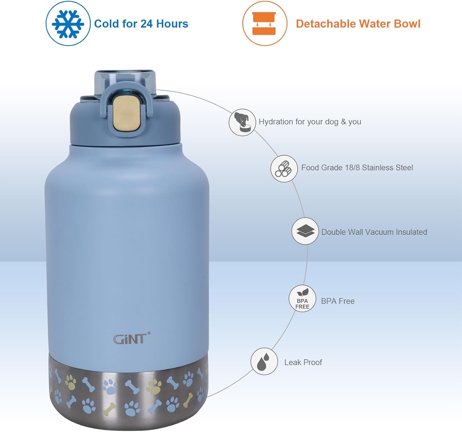 🛡️ GiNT 37oz Insulated Stainless Steel Dog & Human Water Bottle, All-in-1 Travel Dispenser with Detachable Bowls & Carrying Case, Leak-Proof Pet Canteen for Walking, Hiking, Camping, Car (Blue) — Safety, Comfort & Current Price (Review)