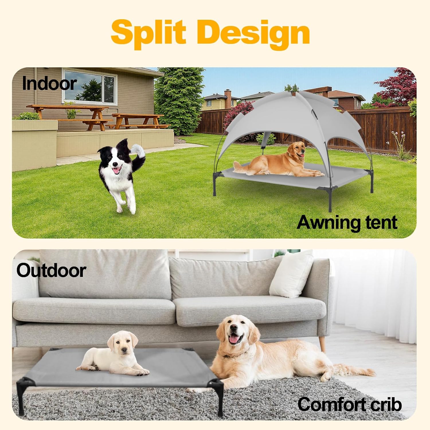 Hassle-Free Weight-Bearing: Unlike ordinary dog beds, our upgraded design includes 4 hard fiber tubes for high strength and weight-bearing to securely hold the dog bed on grass, sand or uneven terrain.3-dimensional shape, solid support,hold up a shady space for your cat or dog,no disturbance,deep sleep;